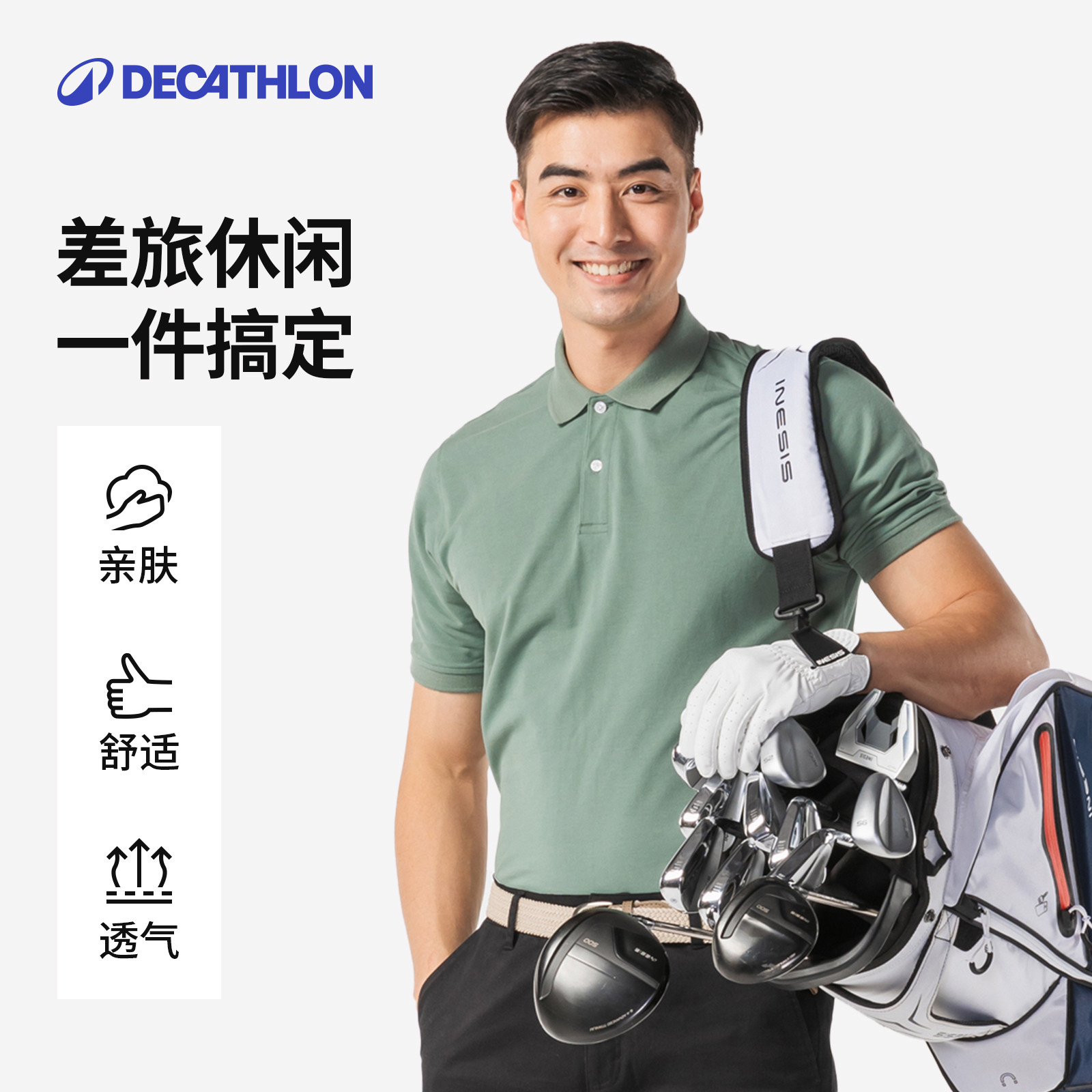 天猫迪卡侬男短袖T恤爸爸polo衫男装纯棉棉涤商务纯色运动上衣男SAG1