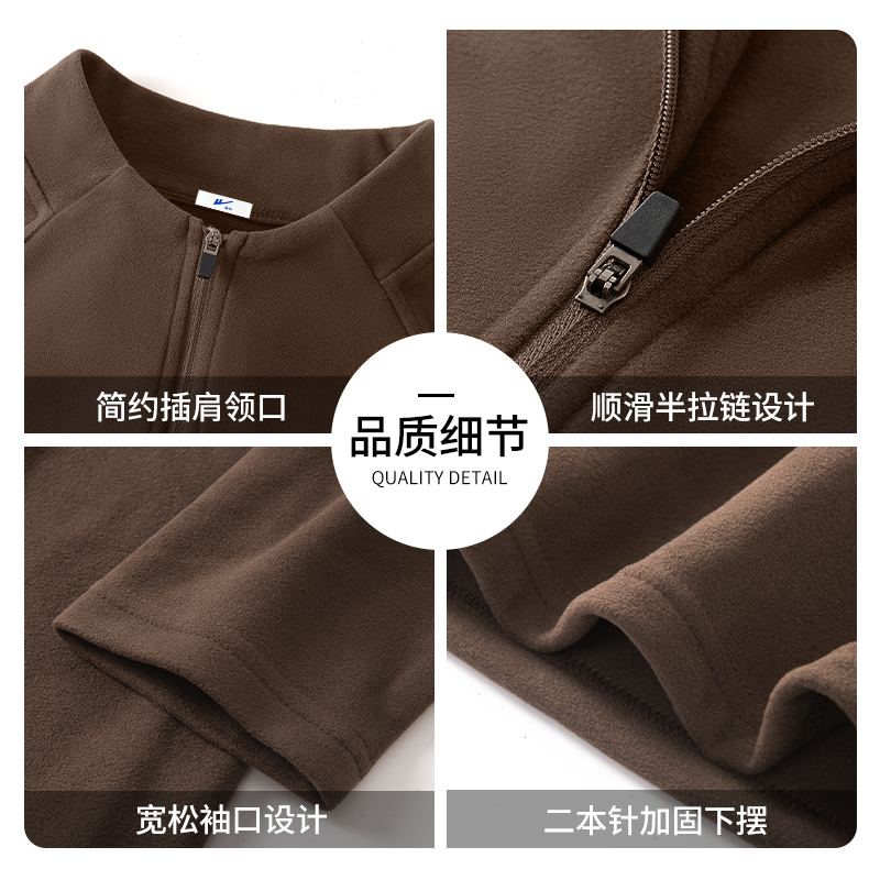 天猫回力半拉链打底衫男冬季双面一体绒保暖插肩长袖复古棕色立领t恤Y