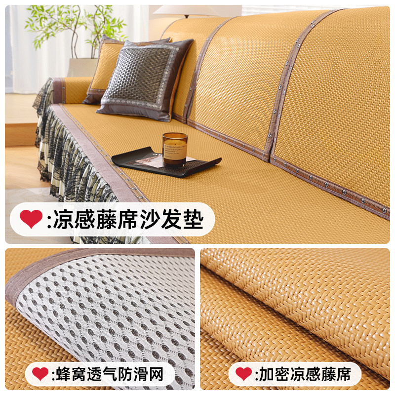 2026新款贵妃定制沙发凉席垫,专为夏季设计,融合冰丝与藤席双重材质,触感清凉顺滑,透气排湿,久坐不闷热。采用防滑底面设计,稳固贴合沙发,不易移位,使用更安心。简约时尚的纹理搭配多种家居风格,既实用又美观。适用于贵妃椅、沙发及座椅,提供舒适支撑,缓解久坐疲劳。冰丝表层亲肤柔软,藤席结构坚韧耐用,兼顾凉爽与承托力。可机洗设计,清洁便捷,长久保持清爽洁净。是夏日居家、办公的理想选择,让您在炎炎夏日尽享清凉惬意。