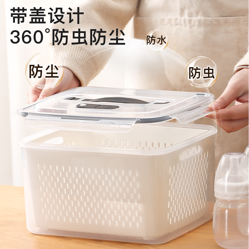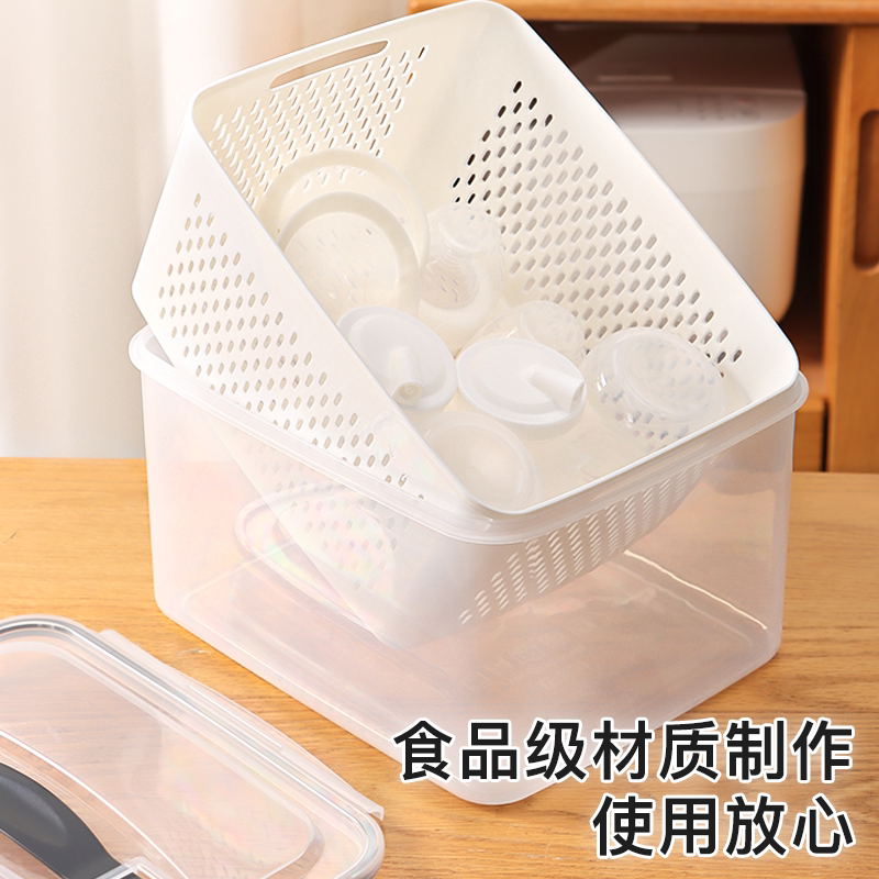 淘厨房双层透气碗筷收纳盒沥水碗架带盖装碗碟盘置物架大容量餐具柜