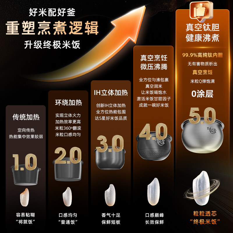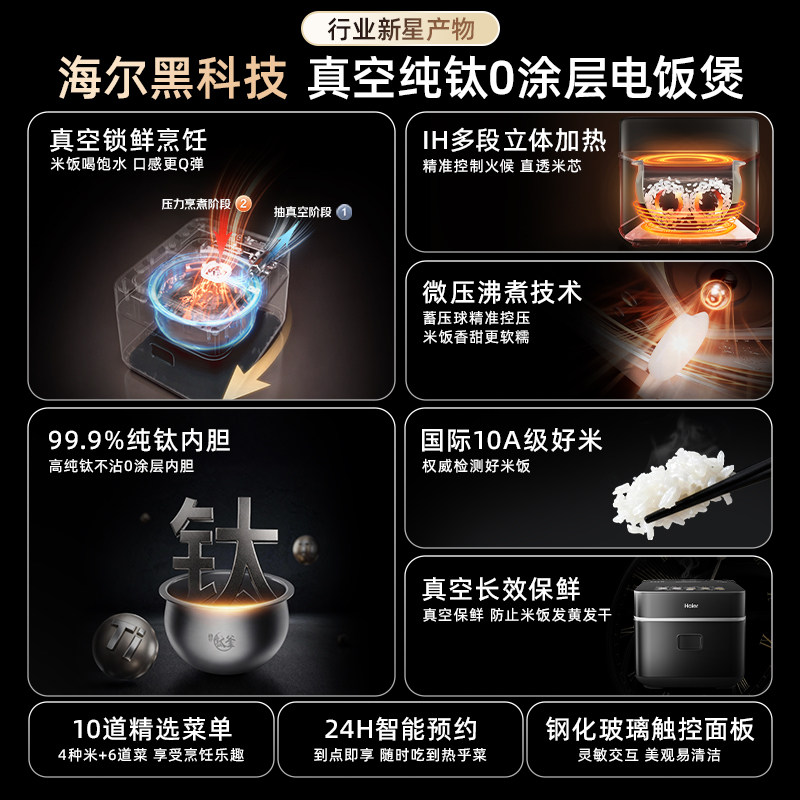 天猫海尔IH真空保鲜电饭煲纯钛0涂层4L多功能家用电饭锅3-4人小型迷你