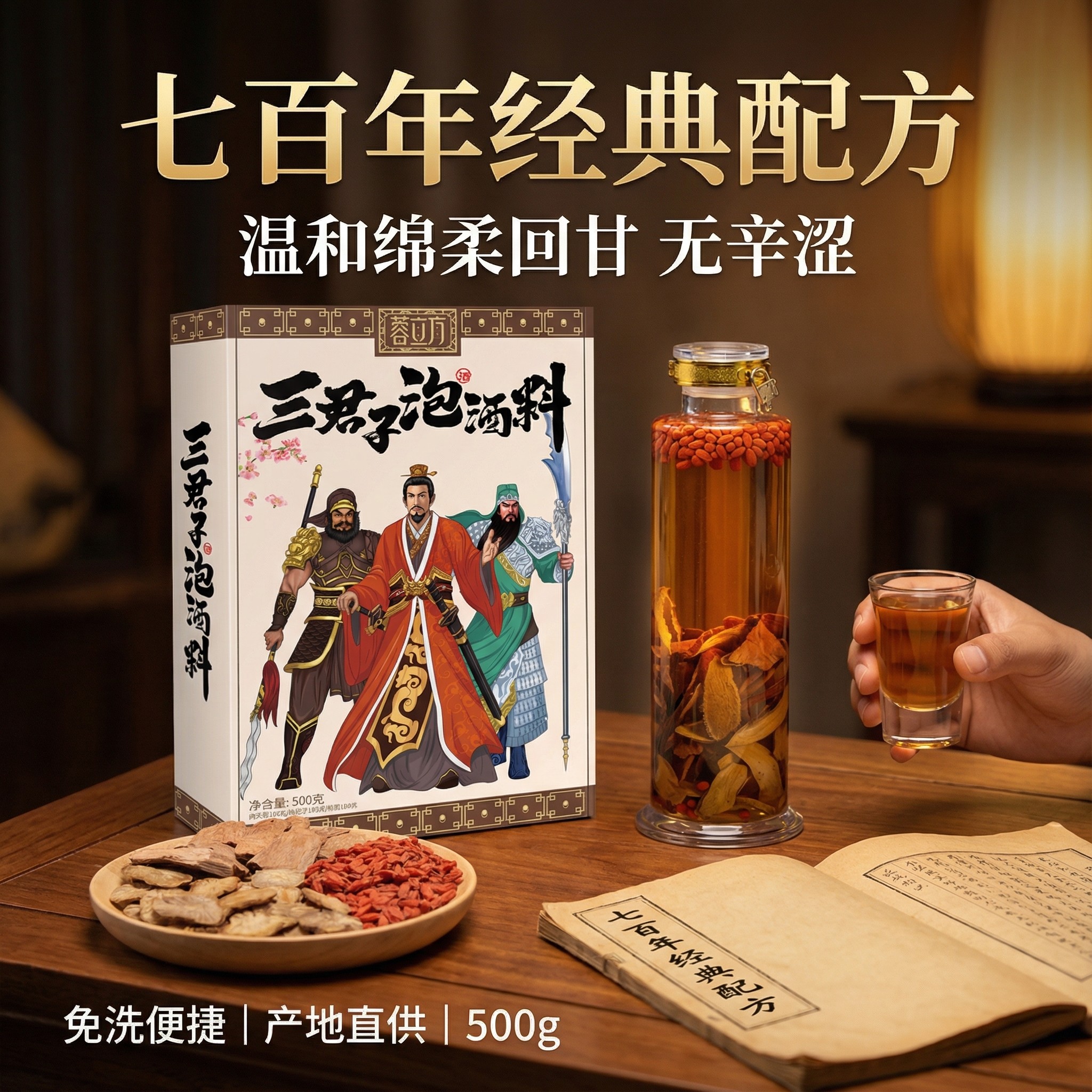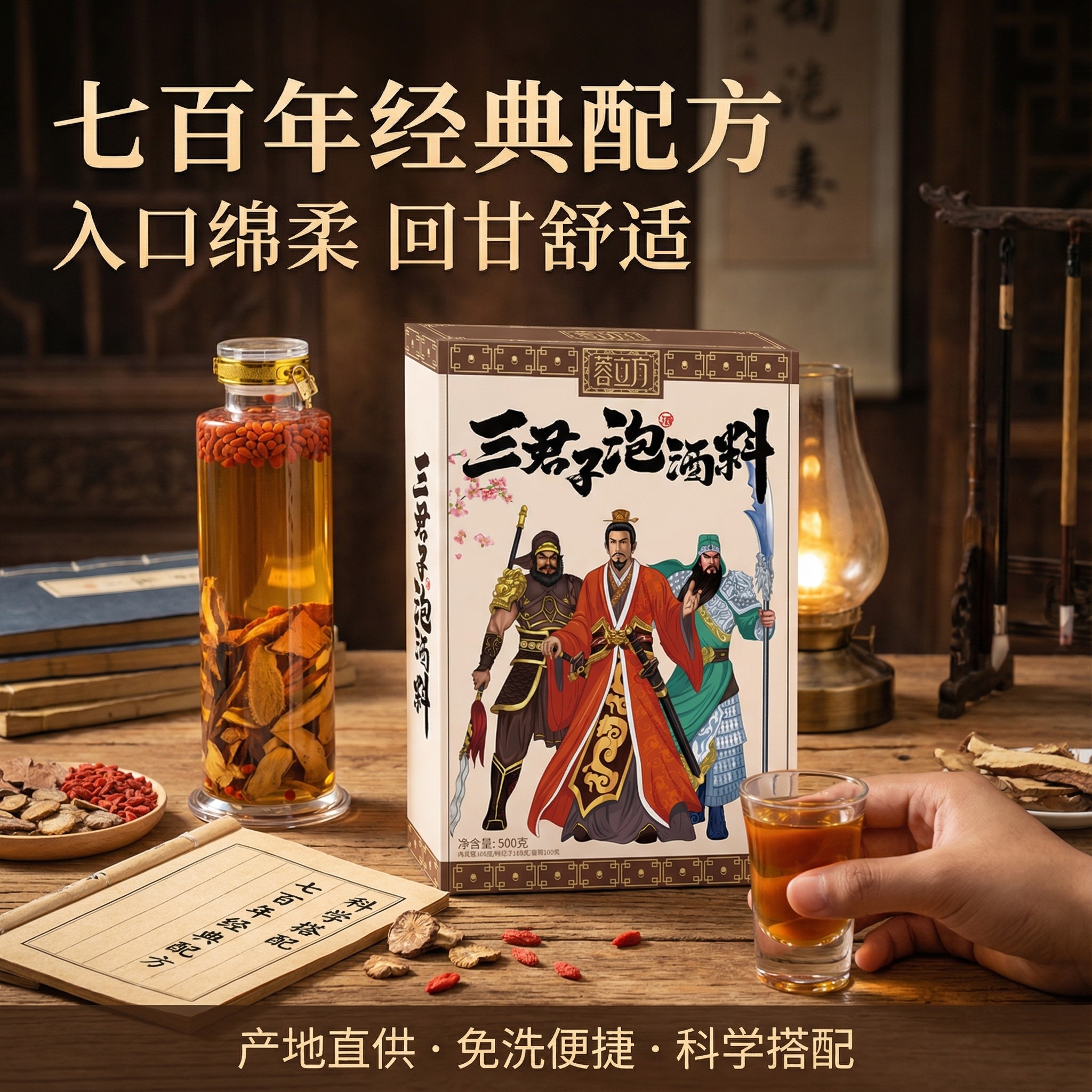 【泡酒专用】蓉立方三君子泡酒料,传承古法配方,精选优质中药材科学配伍,专为男士滋补养生设计。以人参、枸杞、鹿茸三味核心药材为主,辅以黄精、淫羊藿等天然草本,温补肾阳、益气固本,助力提升精力与体质。药材地道,配比严谨,无添加防腐剂,安全放心。适用于日常泡制养生酒,酒香醇厚,药力温和持久。坚持适量饮用,可改善疲劳、增强免疫,是男性日常保健的理想选择。蓉立方秉承“药食同源”理念,让传统养生智慧融入现代生活,守护健康活力。
