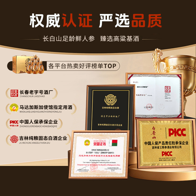 淘宝白圣山人参枸杞酒高粱基酒 长白山人参酒52度小瓶养生酒礼盒42度