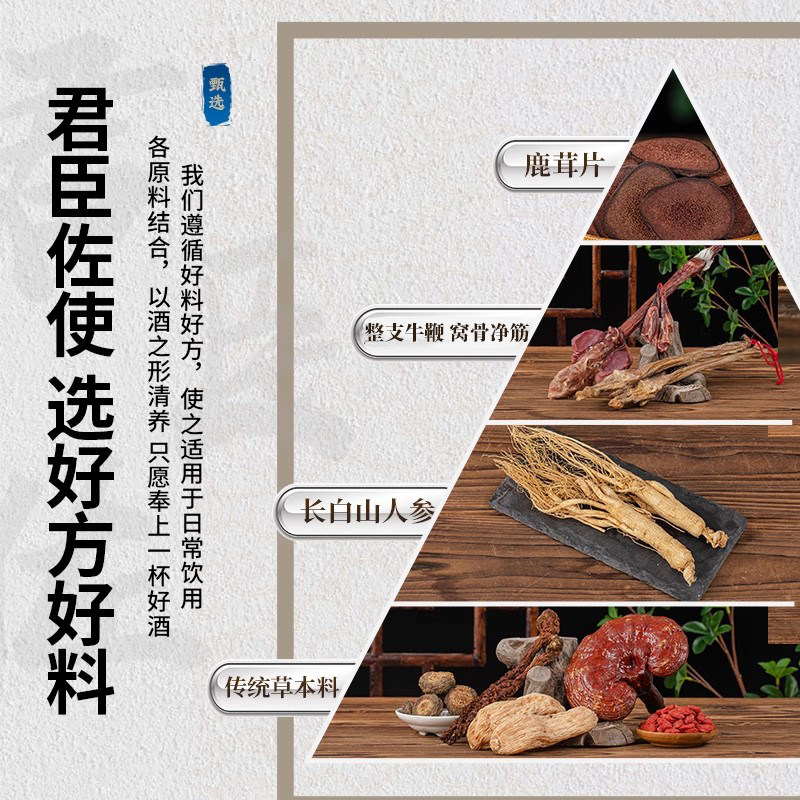 本款男士专用泡酒料精选人参、枸杞、鹿茸等十全大补高级中药材,科学配伍,专为男性养生定制。人参大补元气、提振精神;枸杞滋补肝肾、益精明目;鹿茸温补肾阳、强筋健骨,辅以多种珍贵肾草中药,协同增效,助力改善疲劳乏力、腰膝酸软、精力减退等问题。酒浸萃取,药性温和易吸收,长期适量饮用可增强体质、提升活力,是男士日常滋补、调理身体的理想选择。建议用高度白酒浸泡7–15天后饮用,每日一小杯,养生保健,由内而外焕发阳刚之气。