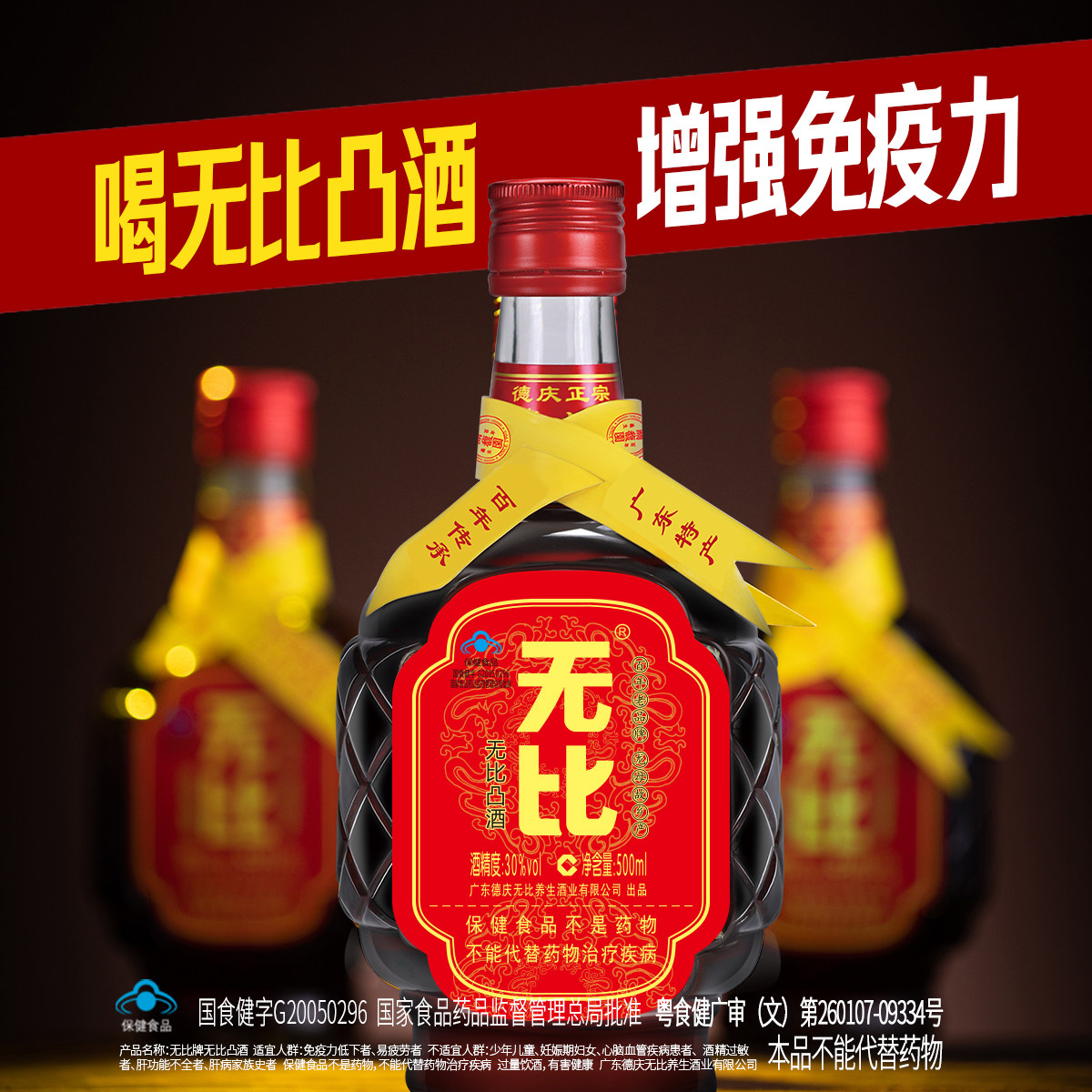 无比古方养生酒无比凸500ml30度巴戟酒广东老字号植物配方保健酒