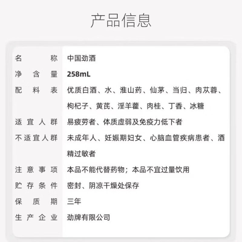 劲牌中国劲酒35度258ml单瓶装,是一款融合传统养生理念与现代工艺的经典保健酒。精选优质原料,科学配比,口感醇和、回味甘甜,酒精度适中,适合日常小酌。每瓶258ml精致容量,便于携带,无论是家庭聚餐、朋友小聚,还是独自品鉴,皆能带来轻松愉悦的饮用体验。中国劲酒倡导“适量饮酒,健康为先”,在享受美酒的同时,兼顾身体调养。正品保障,品质可靠,是追求健康生活方式人士的尝鲜之选。开启一瓶,品味匠心,感受劲酒带来的温润与活力。