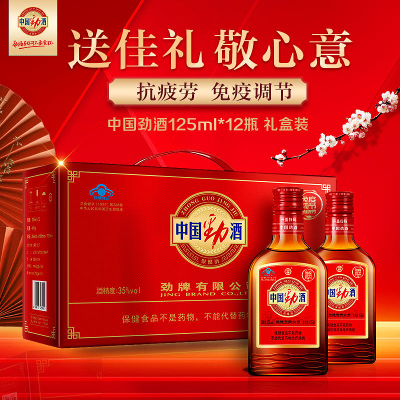 天猫中国劲酒35度125ml小瓶自饮老人长辈送礼礼盒装劲牌养生保健酒