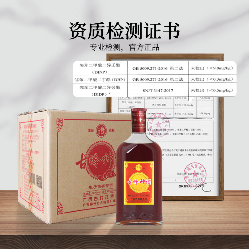 天猫广西古岭神酒500ml瓶装整箱 人参枸杞黄精养生药材浸泡酒过年送礼