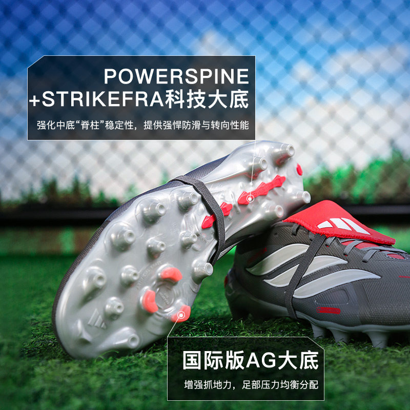 小李子阿迪达斯猎鹰26(FT翻鞋舌)足球鞋(型号:KI6294)是一款面向成人男性的中端AG短钉战靴,专为人工草场地设计。鞋面采用轻量化合成材料,搭配经典翻折式鞋舌设计,增强触球感与包裹性,致敬经典猎鹰系列血统。中底提供稳定支撑,AG短钉布局优化抓地力与灵活性,适合多方向快速移动。整体设计兼顾性能与性价比,适合业余及进阶球员日常训练与比赛使用。简约黑红配色彰显低调运动风格,是追求实战表现与经典外观的理想选择。