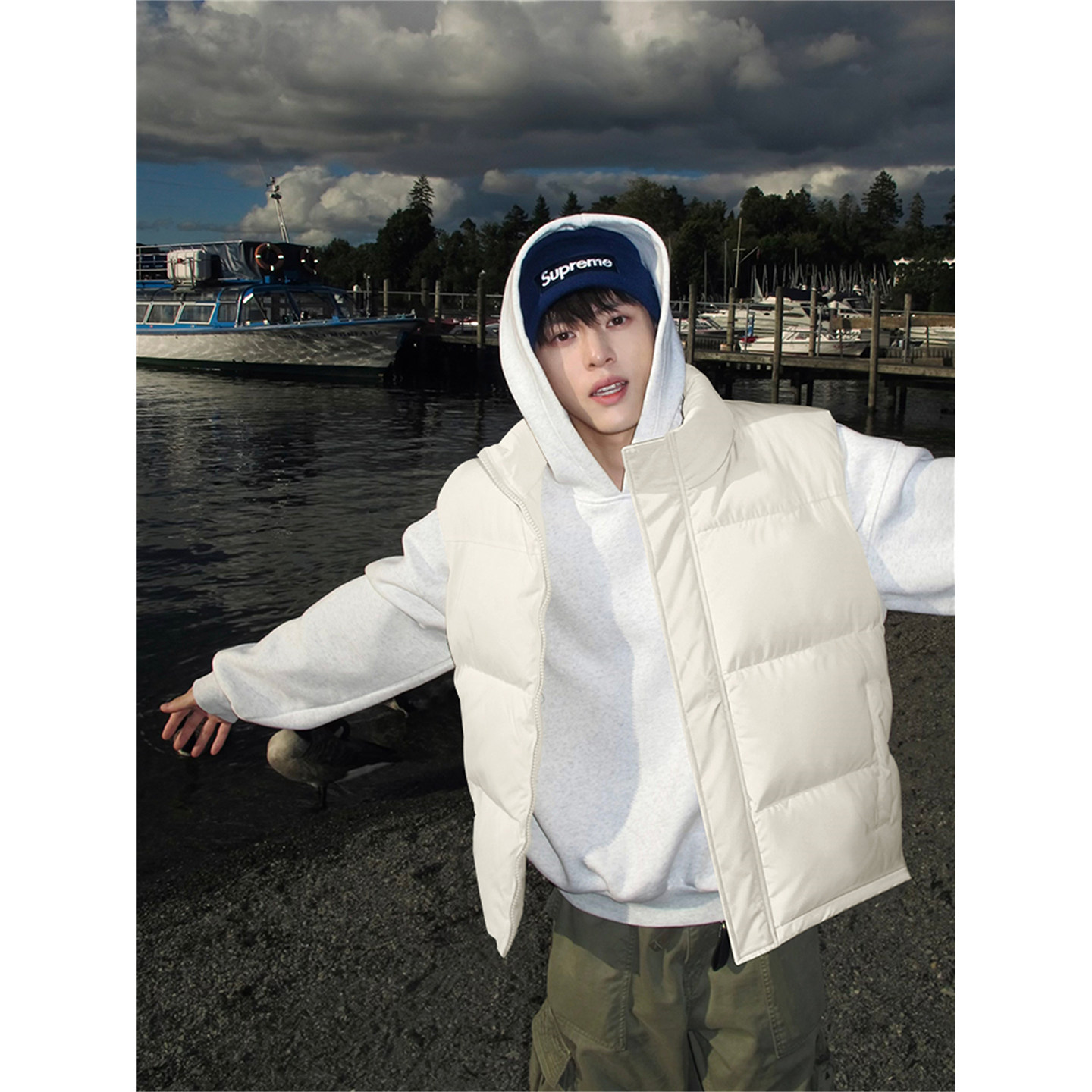 简约百搭纯色立领韩版90%白鸭绒羽绒马甲冬季新款保暖舒适上衣男