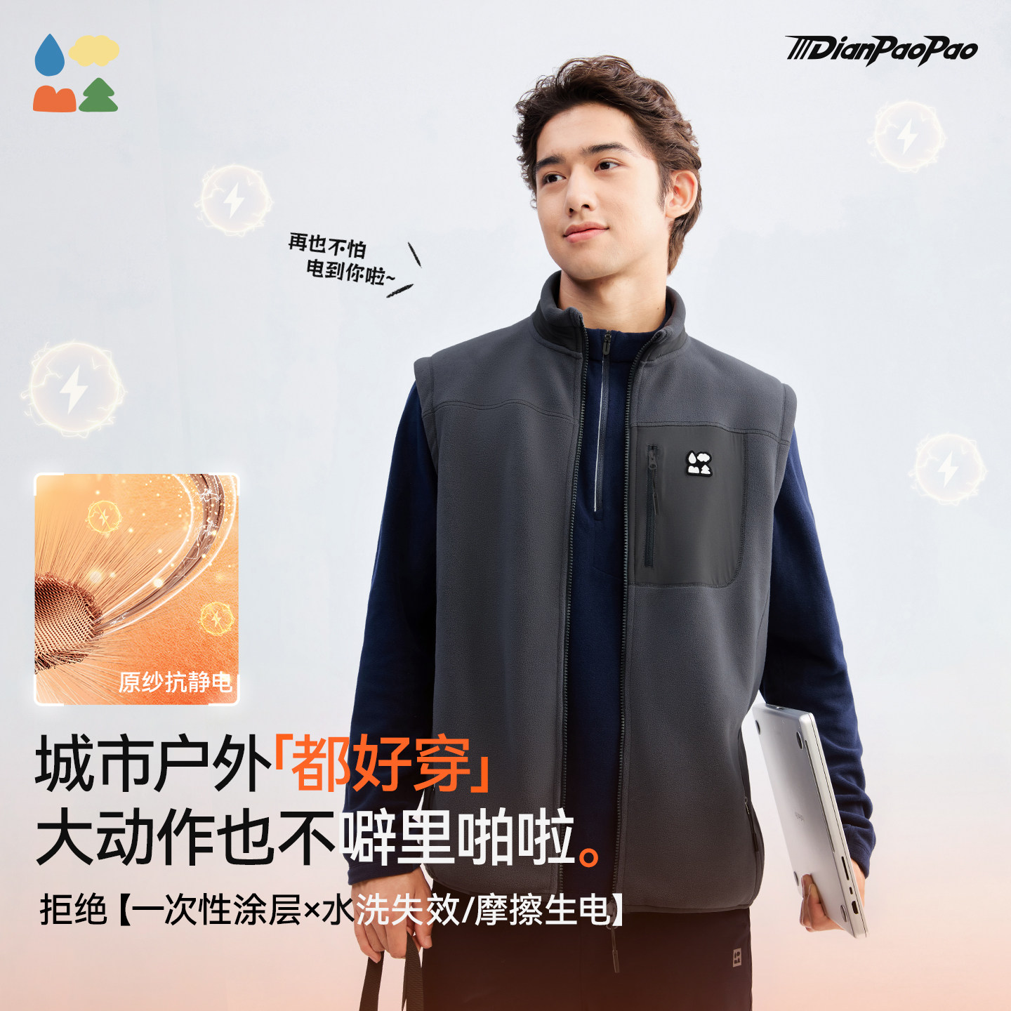 天猫【电跑跑】森林棠「撞色口袋」26款抗静电男式立领加厚抓绒马甲