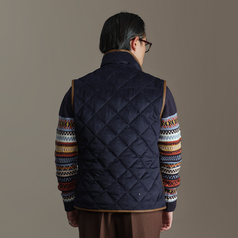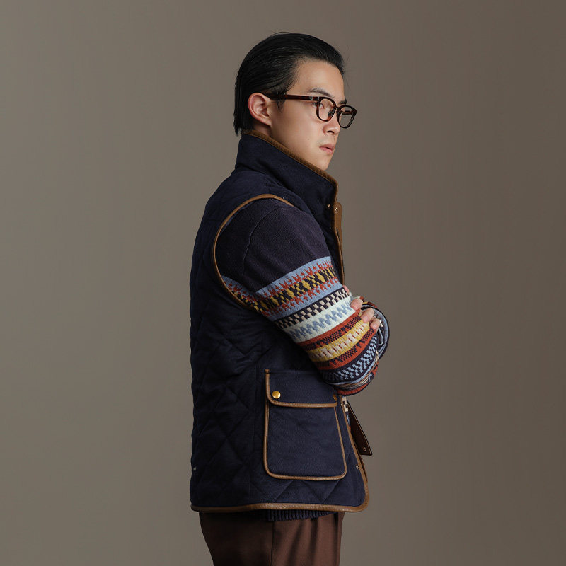 【拼皮羊毛暖芯马甲】专为男士秋冬保暖设计,采用高品质羊毛暖芯填充,轻盈蓬松,锁温性能卓越。经典菱格绗缝工艺,不仅提升整体质感,更有效固定填充物,久穿不变形。前襟拼接耐磨皮革装饰,增添硬朗型格,兼顾时尚与实用。平圆方剪裁贴合男性身形,活动自如不束缚。加厚设计应对寒冷天气,内搭外穿皆宜,是秋冬季节的理想保暖单品。无论是通勤、户外还是日常休闲,这款马甲都能为你提供持久温暖与 stylish 穿搭体验,是型男衣橱不可或缺的实用之选。