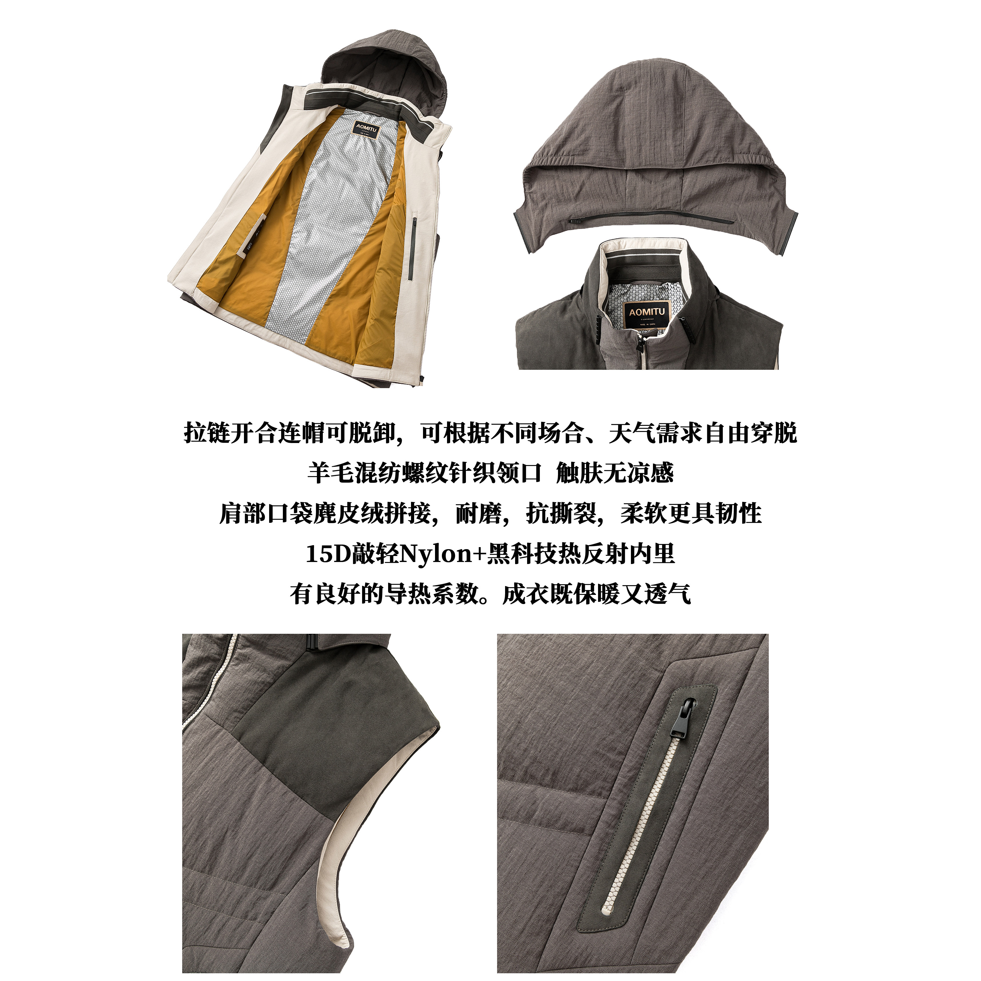 淘走欧美订单!小众户外!秋冬男士防泼水刺绣可拆卸连帽棉马甲外套