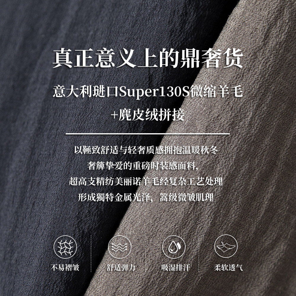 淘宝限量 意产130S皱感羊毛 冬季男士精纺羊毛鹅绒马甲外穿羽绒马甲男