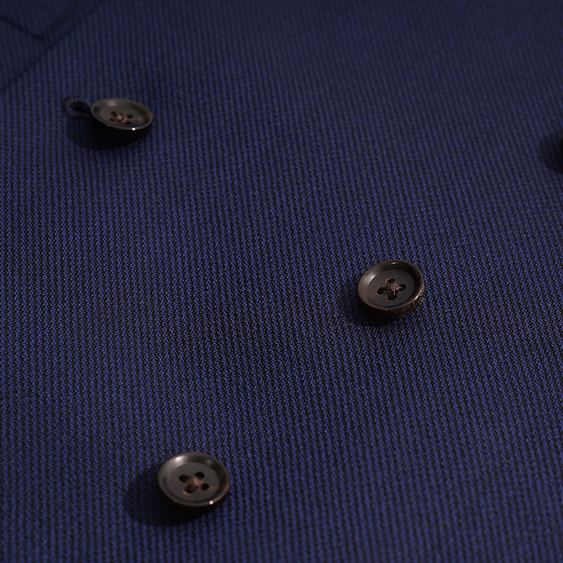 LAMPO/蓝豹男士商务青果领西服马甲,精选优质丝羊毛面料,融合丝绸光泽与羊毛挺括,质感细腻、垂坠有型。经典青果领设计,线条流畅,彰显优雅绅士风范,适合商务洽谈、宴会等正式场合。立体剪裁贴合身形,兼顾舒适与修身效果,内搭衬衫或毛衣皆宜。前襟精致扣饰与隐藏式口袋设计,细节考究,实用与美观并重。作为西服套装的点睛之笔,这款马甲不仅提升整体穿搭层次感,更展现穿着者的品位与格调。蓝豹品牌秉承意式工艺传统,匠心打造每一处细节,是现代男士商务衣橱的理想之选。