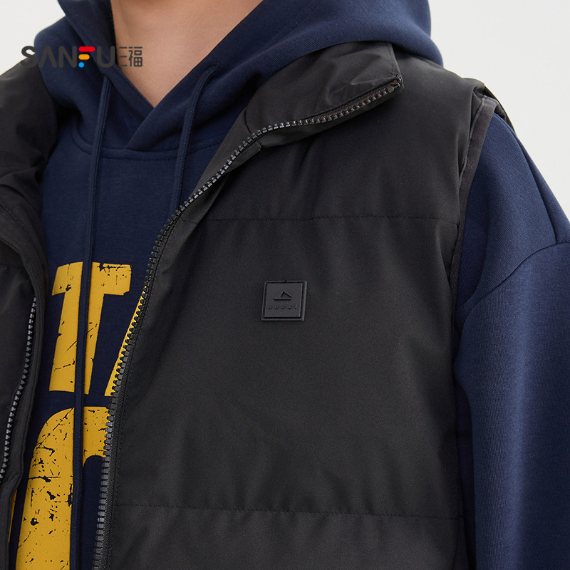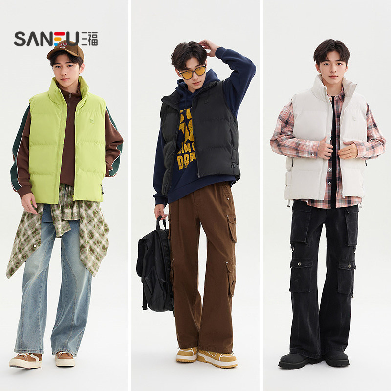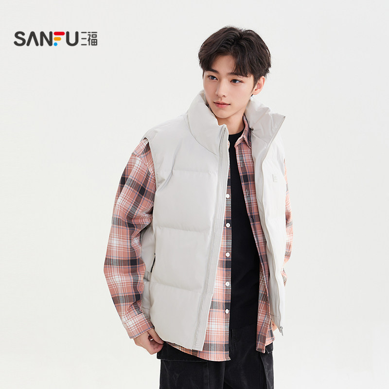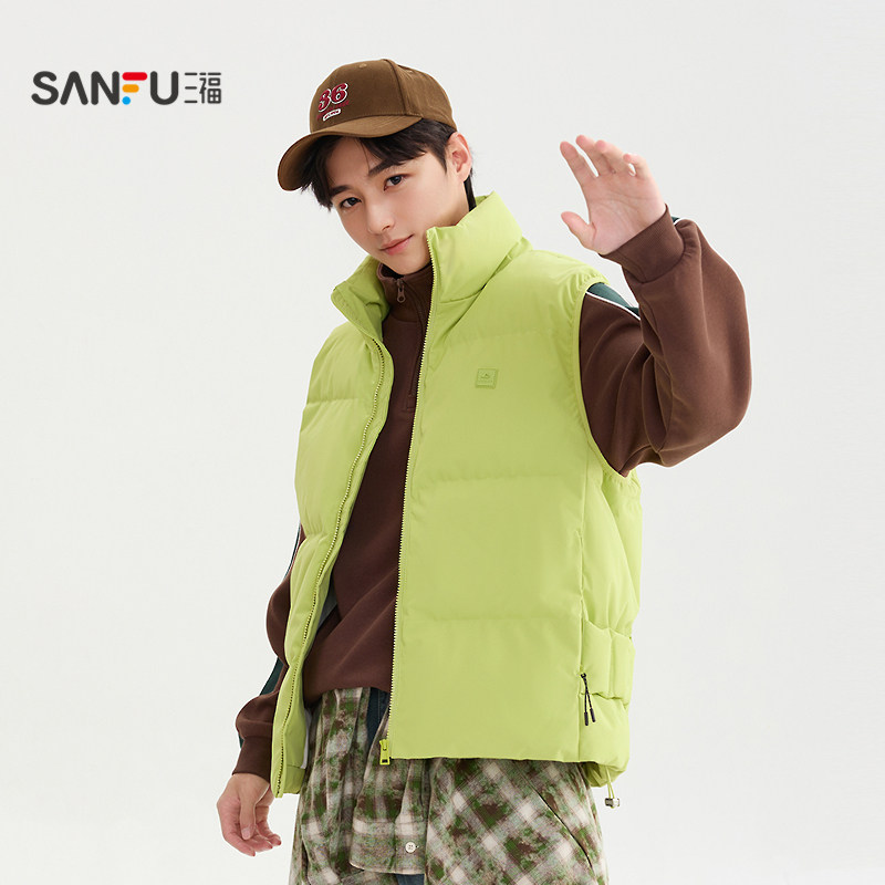 三福2025冬季男士豆腐块立领棉马甲(款号:505825)以简约实用为设计理念,采用宽松落肩剪裁,兼顾舒适与时尚。立领设计有效防风保暖,适合秋冬季叠穿搭配。外层选用挺括有型的豆腐块状肌理面料,质感细腻,视觉层次丰富;内里填充优质棉絮,轻盈保暖不臃肿。无袖马甲版型解放双臂活动,可内搭毛衣或卫衣,轻松打造街头休闲或通勤造型。多口袋设计提升实用性,细节精致。整体风格简约大方,适合追求舒适与潮流兼具的男士日常穿搭,是冬季衣橱的百搭单品。
