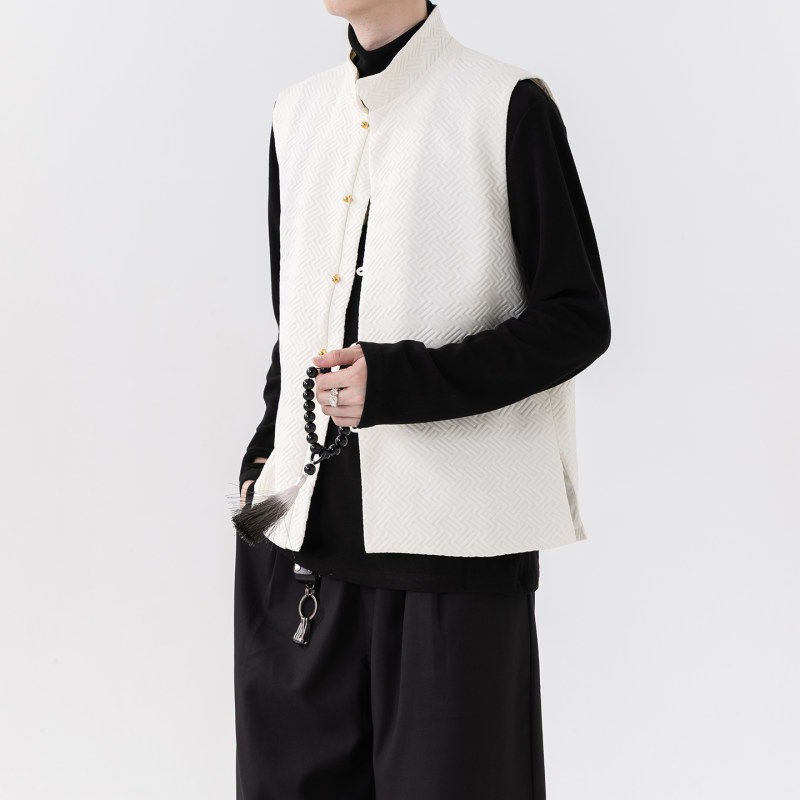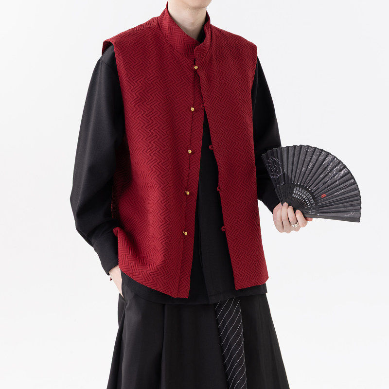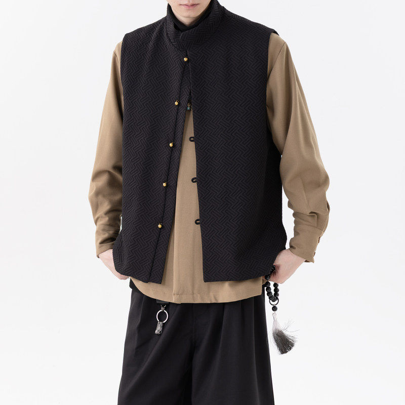 淘宝新中式提花铜扣马甲男国潮复古立领无袖外套秋季背心坎肩唐装汉服
