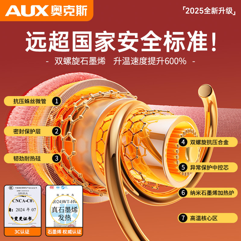 奥克斯石墨烯电热毯单双人电褥子双控调温恒温家用学生宿舍旗舰店