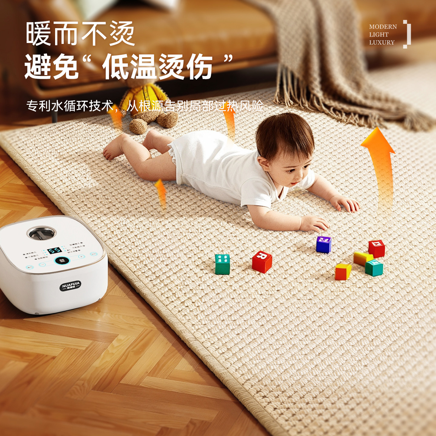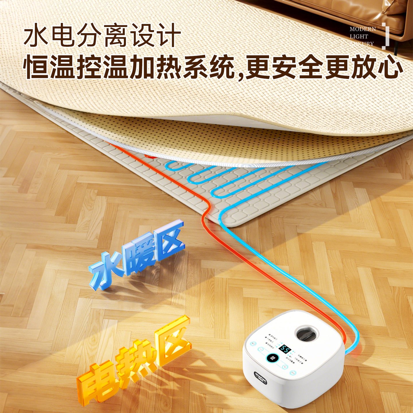 2025年全新升级款水暖毯客厅地热垫,集安全、舒适与便捷于一体。采用先进水暖循环技术,告别传统电热丝,升温均匀、无电磁辐射,使用更安心。智能温控系统支持多档调温,满足不同季节需求。表面选用防水防污面料,可直接擦洗,清洁打理轻松便捷。加厚防滑底背设计,稳固贴合地面,安全耐用。适用于客厅、卧室、书房等多种场景,冬日取暖、居家休闲的理想之选。正品保障,官方旗舰店直售,享受优质售后服务。水暖毯地热垫,让温暖从脚下蔓延,开启健康舒适新生活。