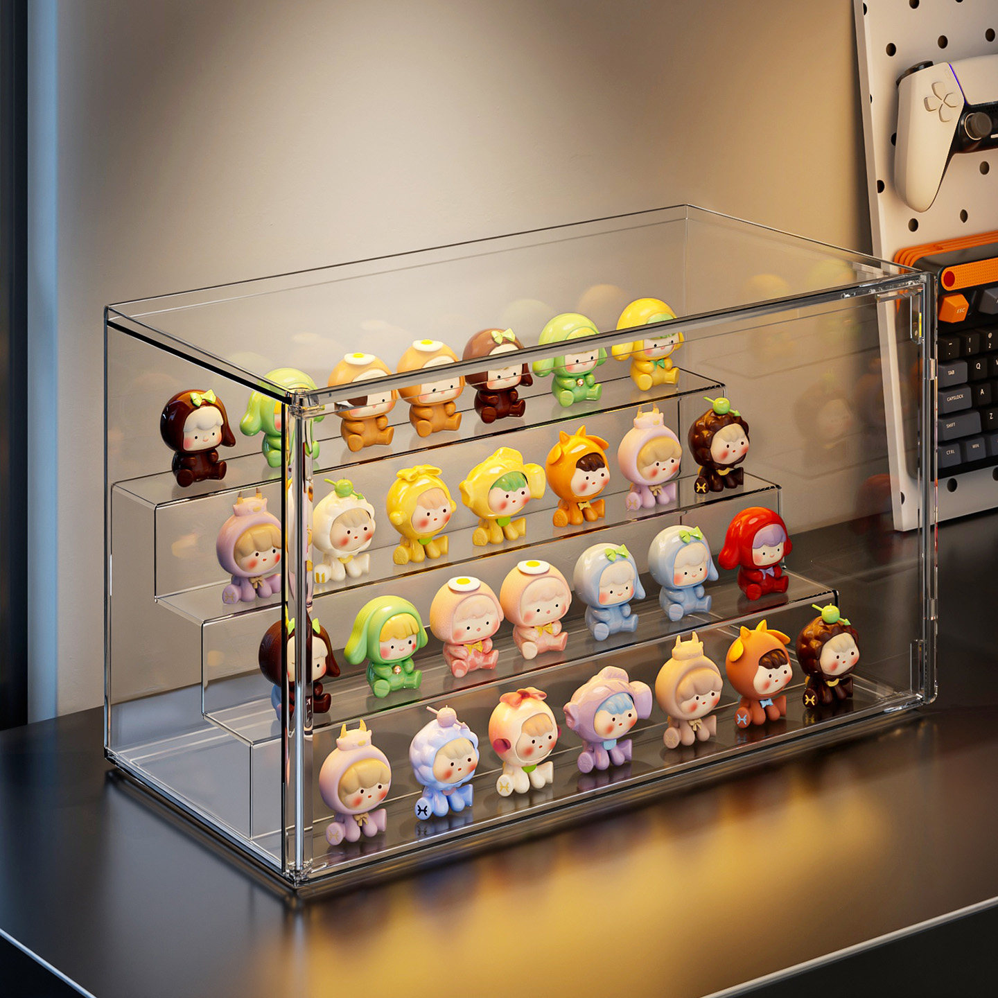 这款萌粒收纳盒阶梯式手办盲盒展示架,采用高透亚克力材质,透明质感清晰展示每一款收藏,防尘设计有效保护手办免受灰尘侵扰。阶梯式分层结构,合理利用桌面空间,层次分明,视觉更立体,轻松收纳盲盒、手办、潮玩、文具等小物件。稳固承托,边缘打磨光滑,安全耐用。适用于书桌、展示柜、卧室或客厅,既是实用收纳工具,也是精致家居装饰。小巧不占地,让心爱藏品井然有序,随时欣赏,尽显个性品味,是手办爱好者不可或缺的桌面好帮手。