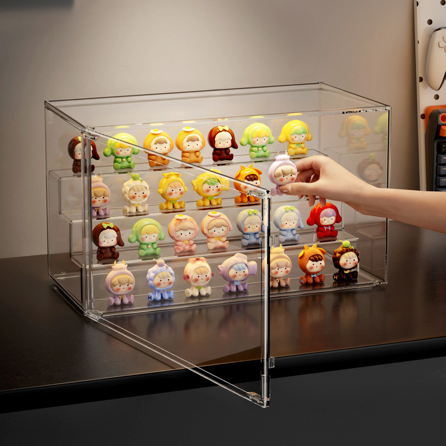 天猫萌粒收纳盒阶梯式手办盲盒展示架收纳防尘家用透明桌面陈列展示盒
