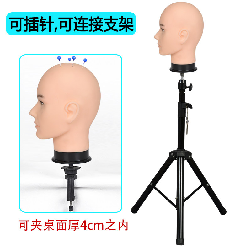 天抿嘴哥头模支架美发公仔模特头假发假人头模型理发剪发三脚落地架