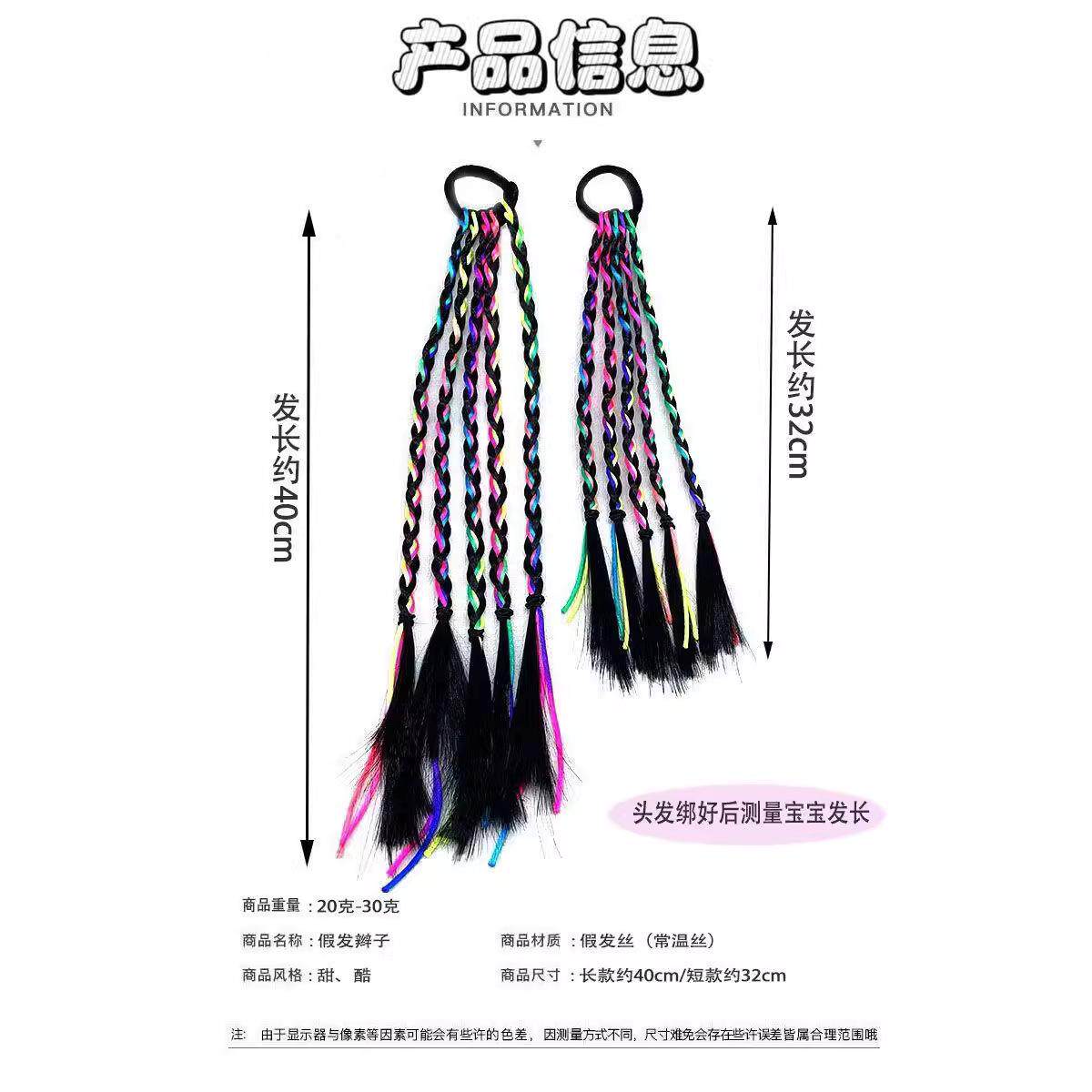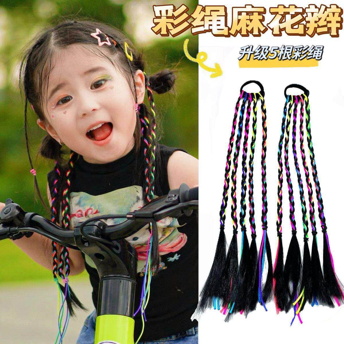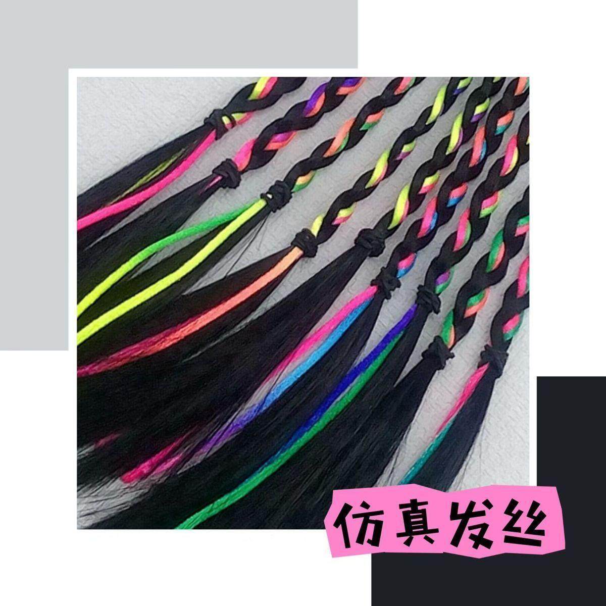 淘宝儿童街舞彩色脏辫辫发绳假发编发马尾彩绳女童发丝女生神器拳击辫
