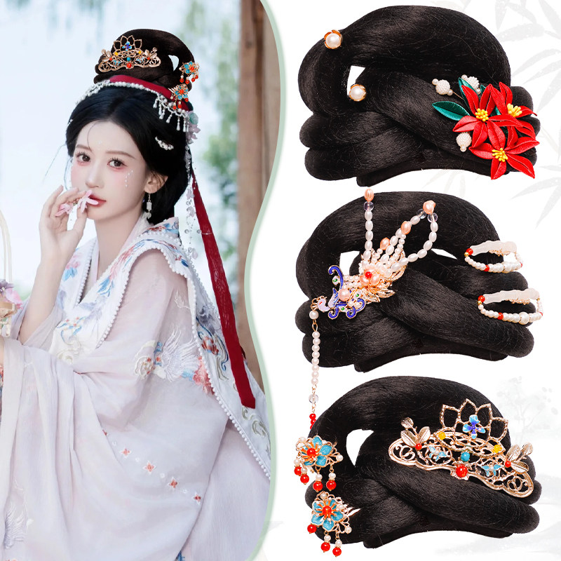 淘宝汉服假发唐风大头高发髻敦煌百搭贵妃发包古风演出婚礼复原款发包