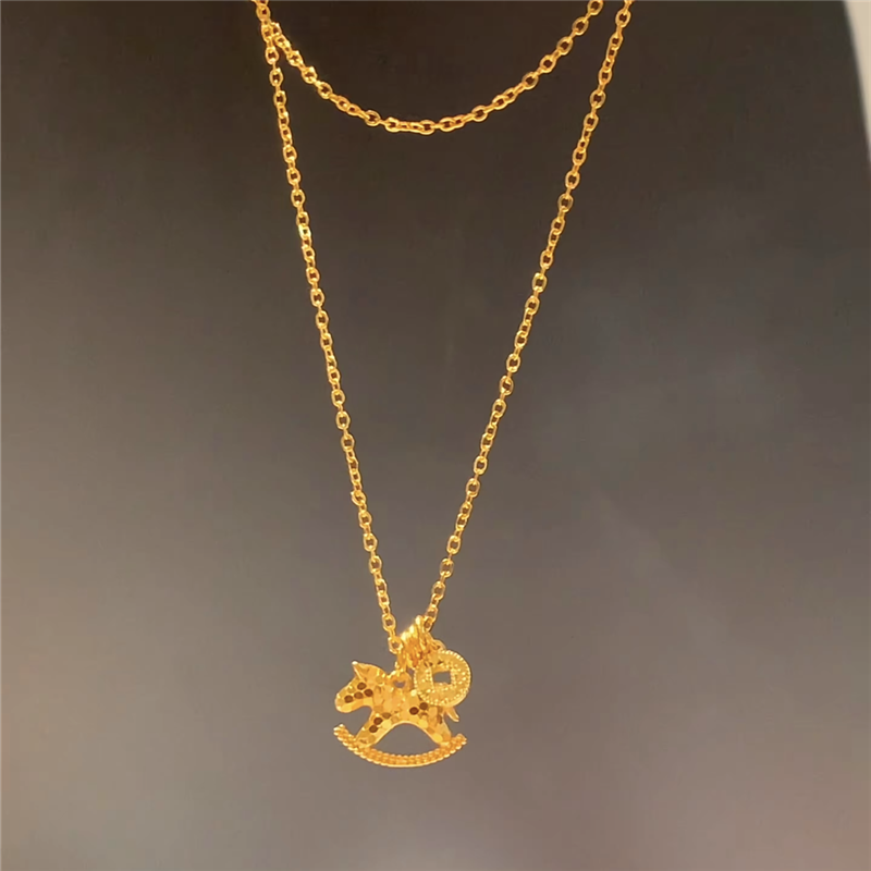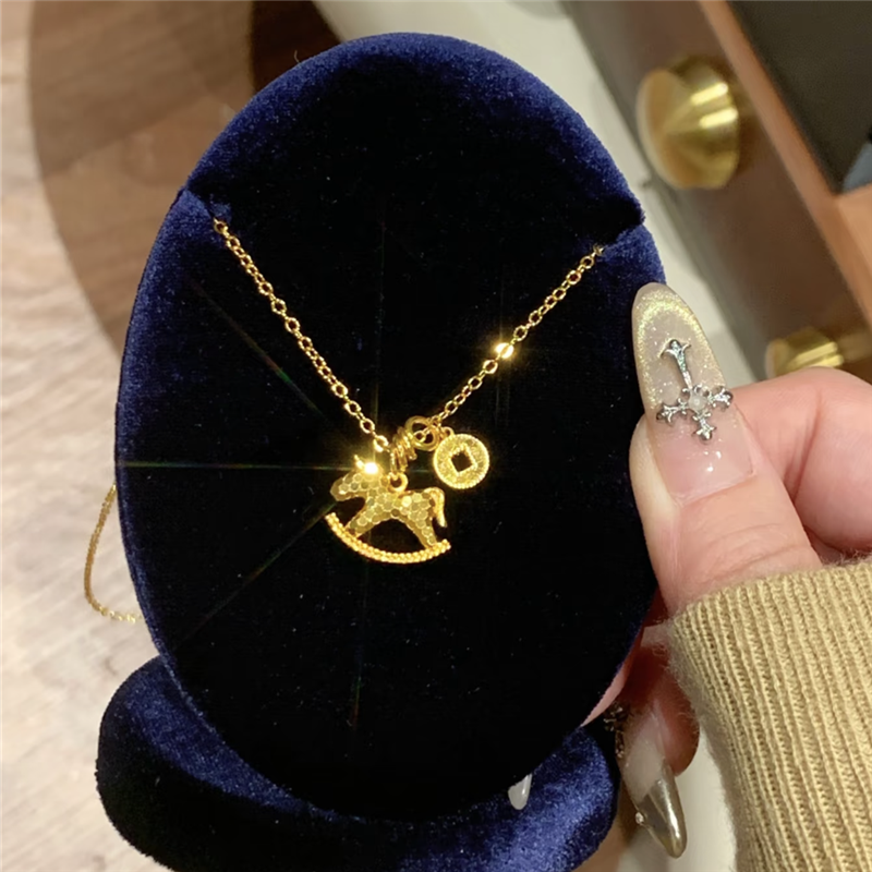 淘宝【马上来财】仿黄金色太闪碎碎冰摇摇马吊坠项链女小马钱币锁骨链