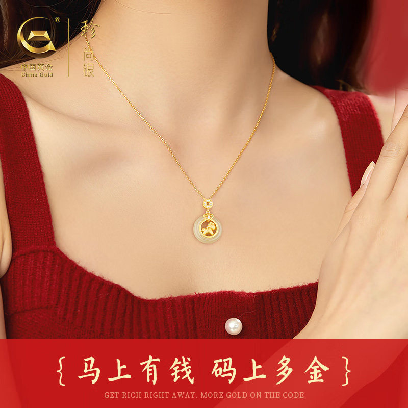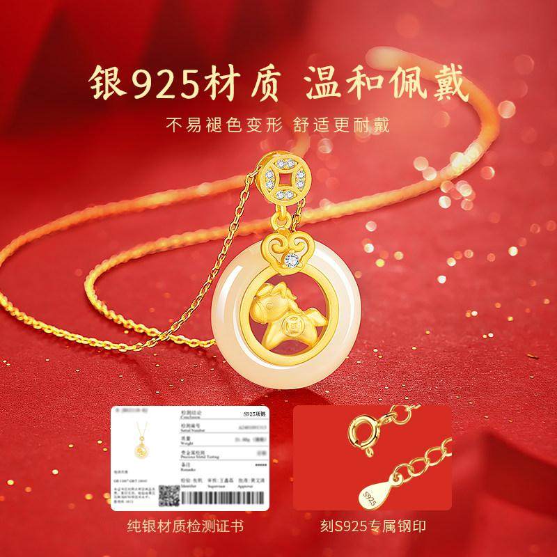 天猫中国黄金珍尚银纯银平安扣项链马年本命年新年礼物送女友老婆S925