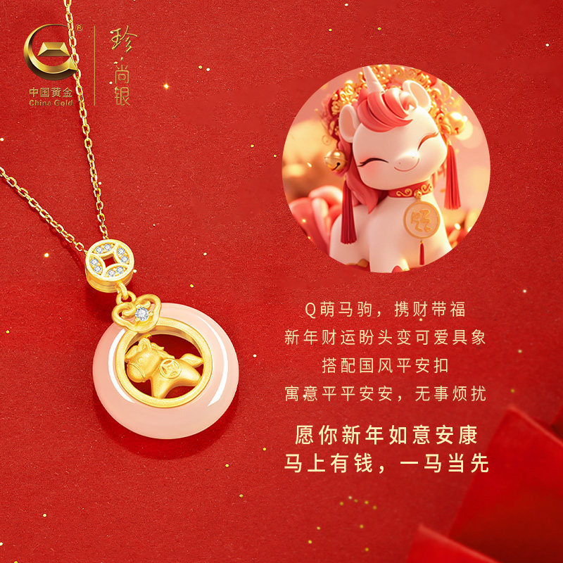 天中国黄金珍尚银马上有钱足银项链女马年本命年新年礼物送女友闺蜜