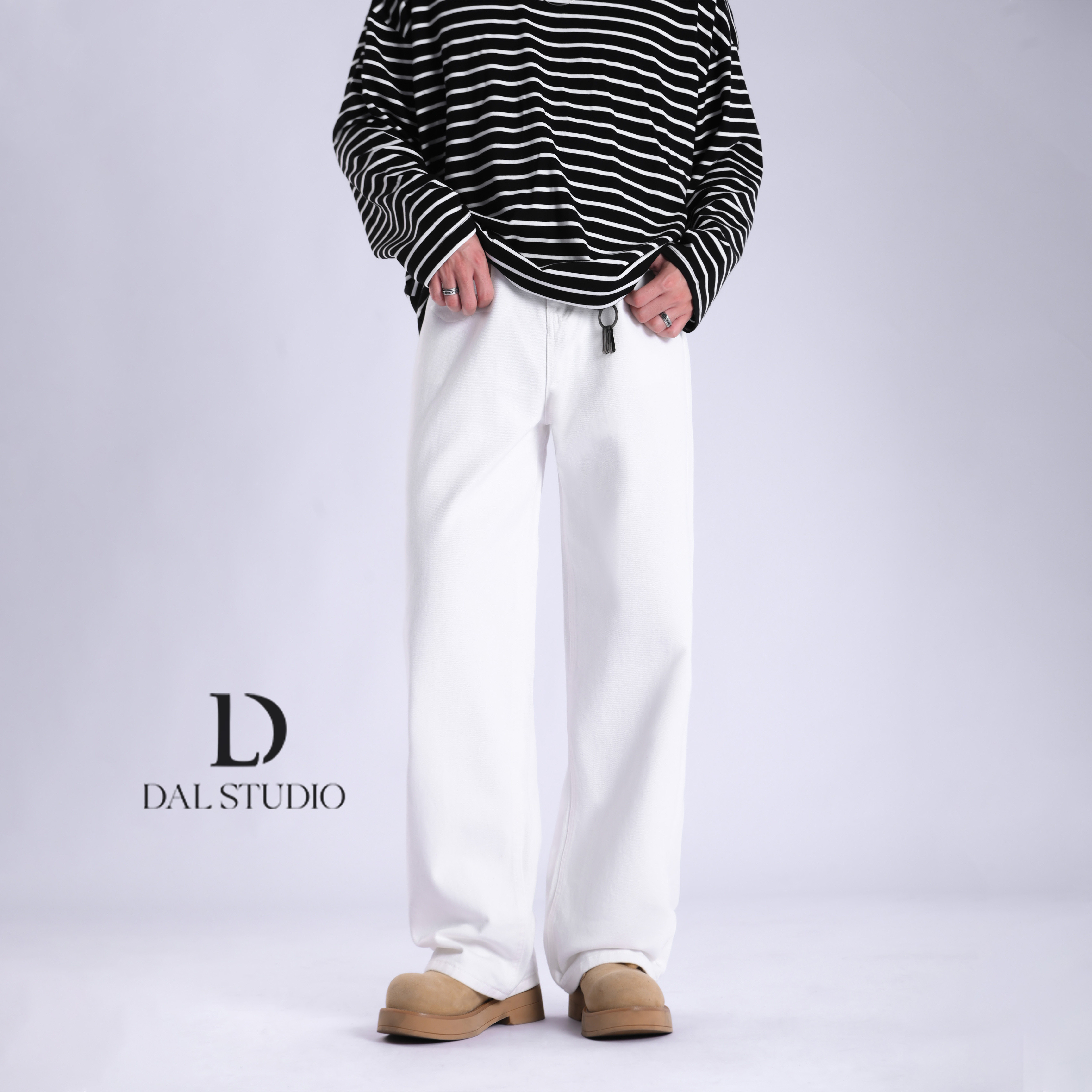 DAL 美式cleanfit宽松直筒牛仔裤男2025年秋季冰蓝色潮流猫须长裤