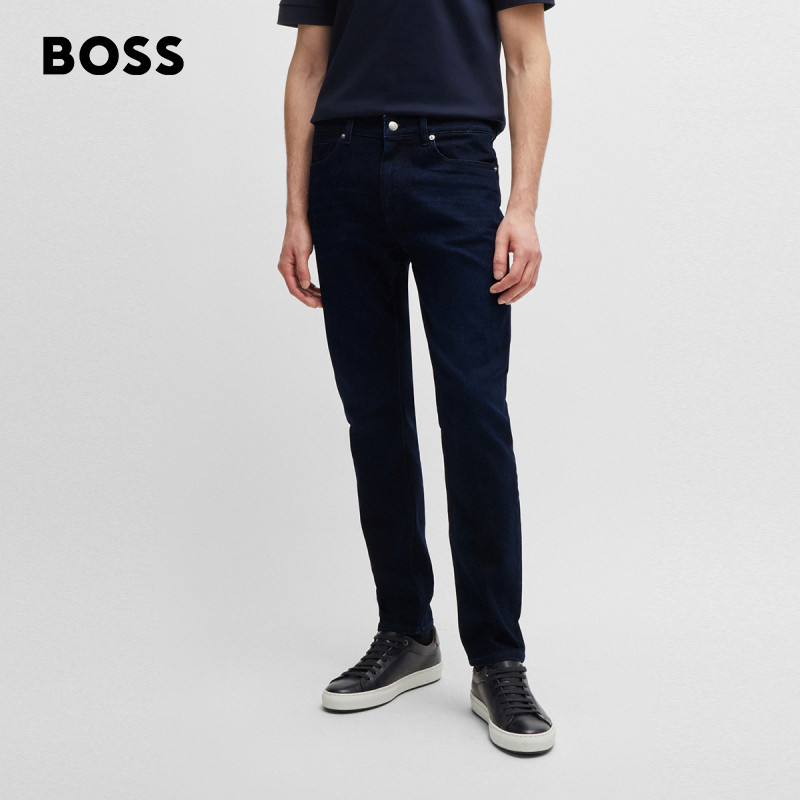 天猫BOSS博斯 男士修身版型柔软深蓝色牛仔裤