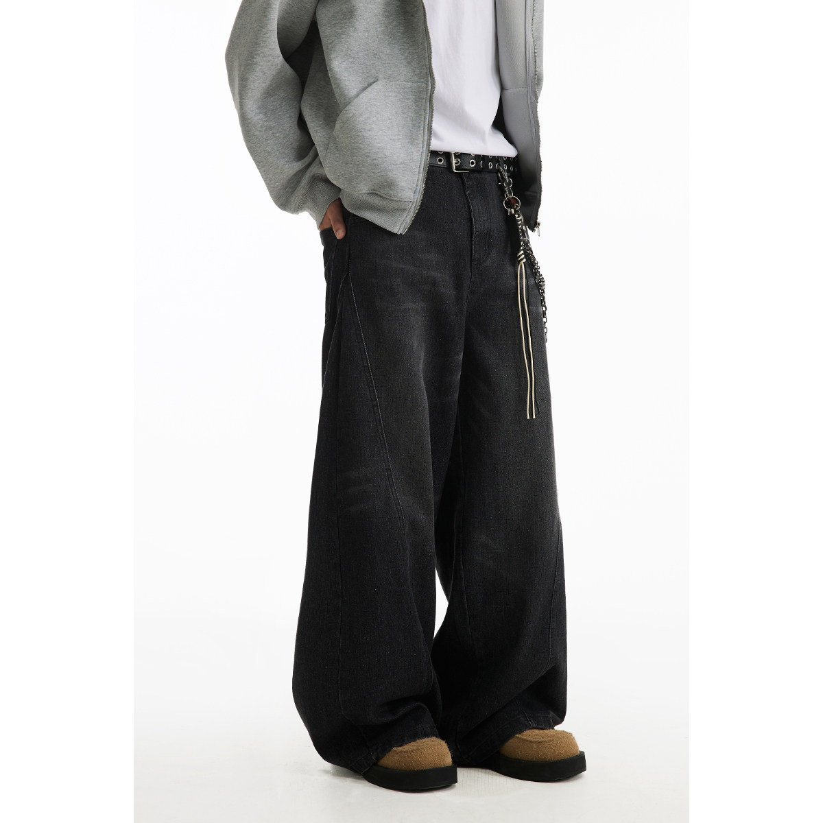 淘宝男道美式复古弯刀阔腿牛仔裤男女2024秋冬新款潮牌宽松痞帅裤子