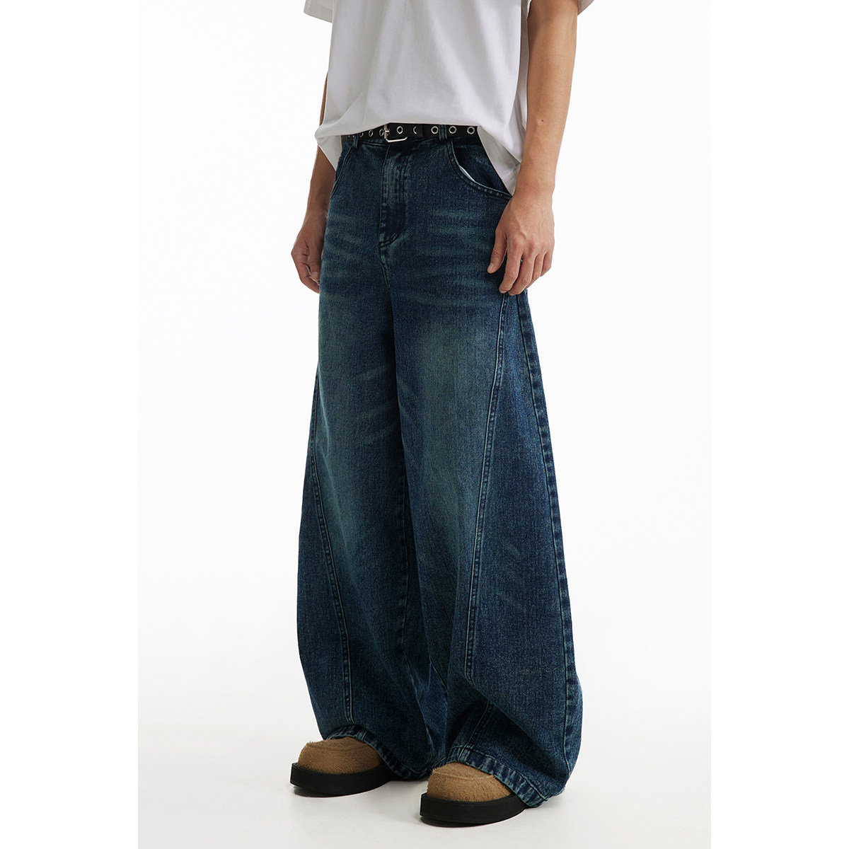 淘美式复古休闲直筒牛仔裤男款春春季潮牌宽松阔腿长裤大码男生裤子