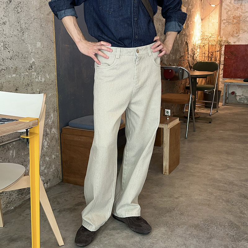 淘宝Nick Tian 极简纯色直筒牛仔裤男秋季新款韩系简约宽松休闲百搭