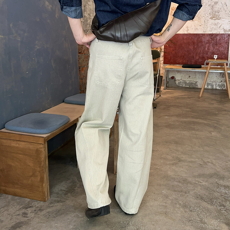 天Nuthink美式复古泼墨阔腿牛仔裤水洗宽松弯刀长裤男新款2026年春