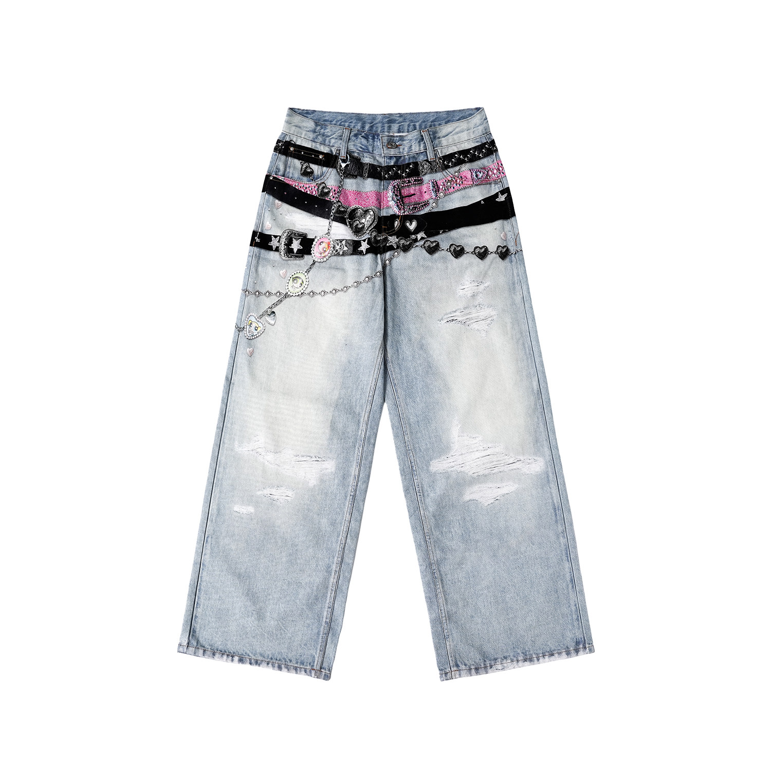 淘宝【飞天小女警联名】WHOOSIS 打印牛仔裤秋冬美式街头宽松长裤男女