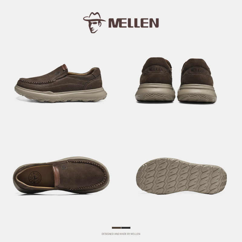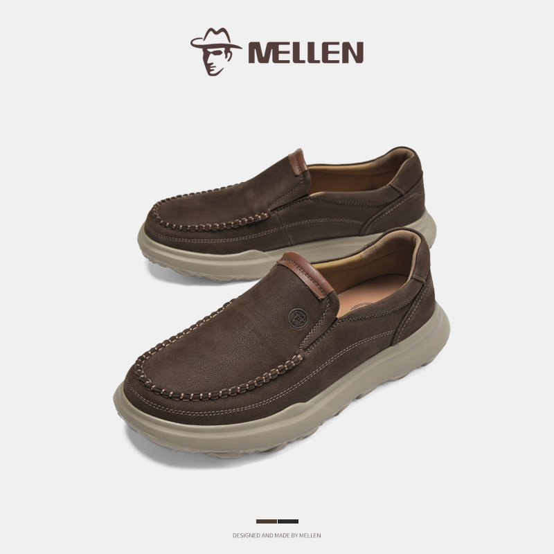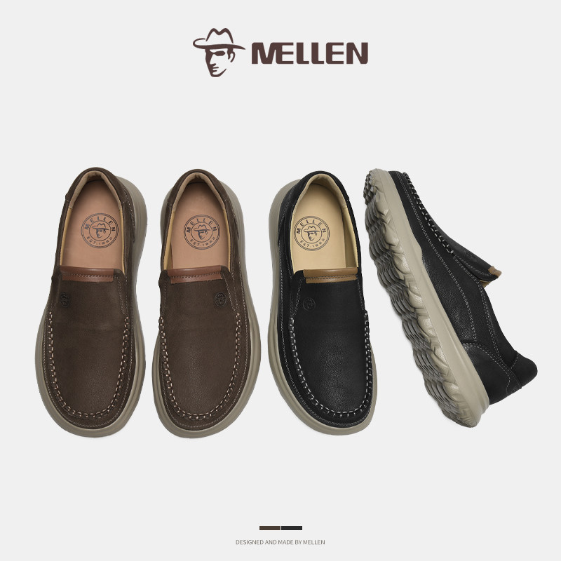 MELLEN名郎男鞋融合复古设计与现代舒适科技,打造经典厚底乐福鞋款。采用优质皮革鞋面,质感细腻,耐穿易打理;一脚蹬懒人设计,穿脱便捷,适合日常通勤与休闲出行。加厚缓震鞋底有效缓解行走压力,提升脚感舒适度,长时间穿着也不易疲劳。低帮版型搭配经典乐福鞋轮廓,既显稳重又不失时尚感,轻松驾驭商务休闲或爸爸风穿搭。MELLEN名郎以匠心工艺与人性化设计,为男士提供兼具颜值与实用性的舒适鞋履选择,是追求品质生活的理想之选。