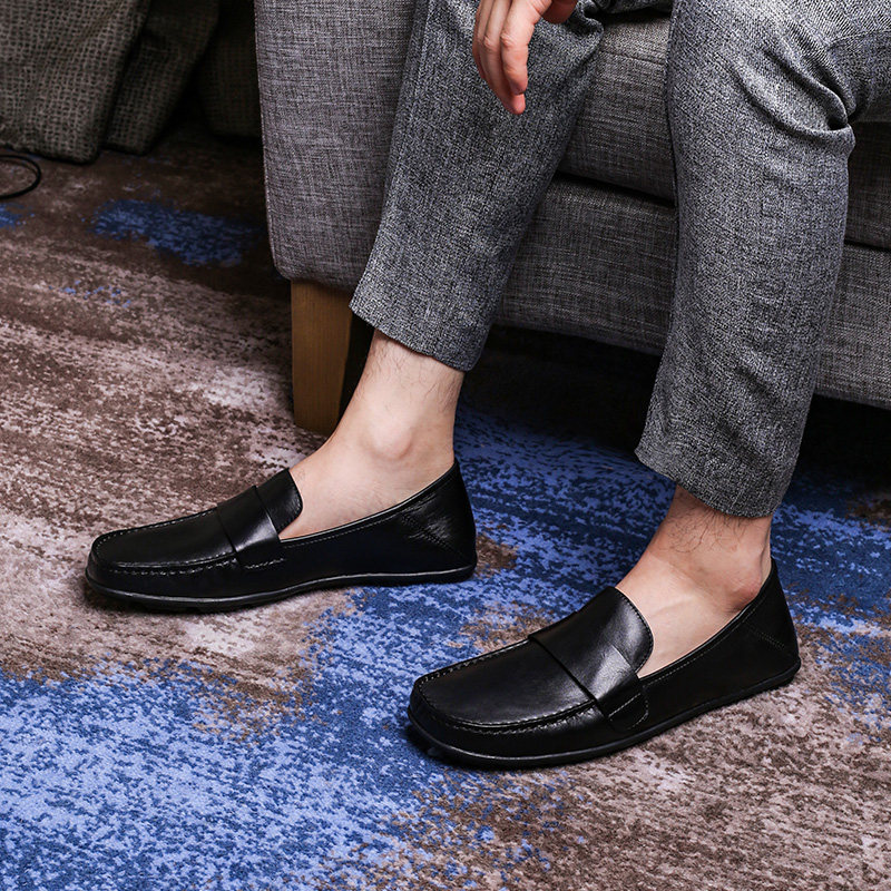 天老人头男鞋真皮休闲皮鞋男软皮软底秋季新款透气防滑驾车鞋爸爸鞋
