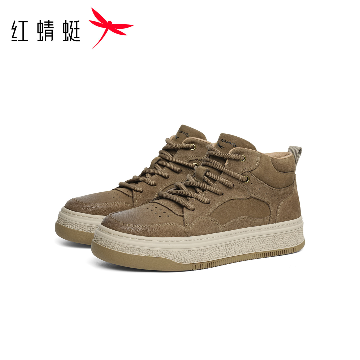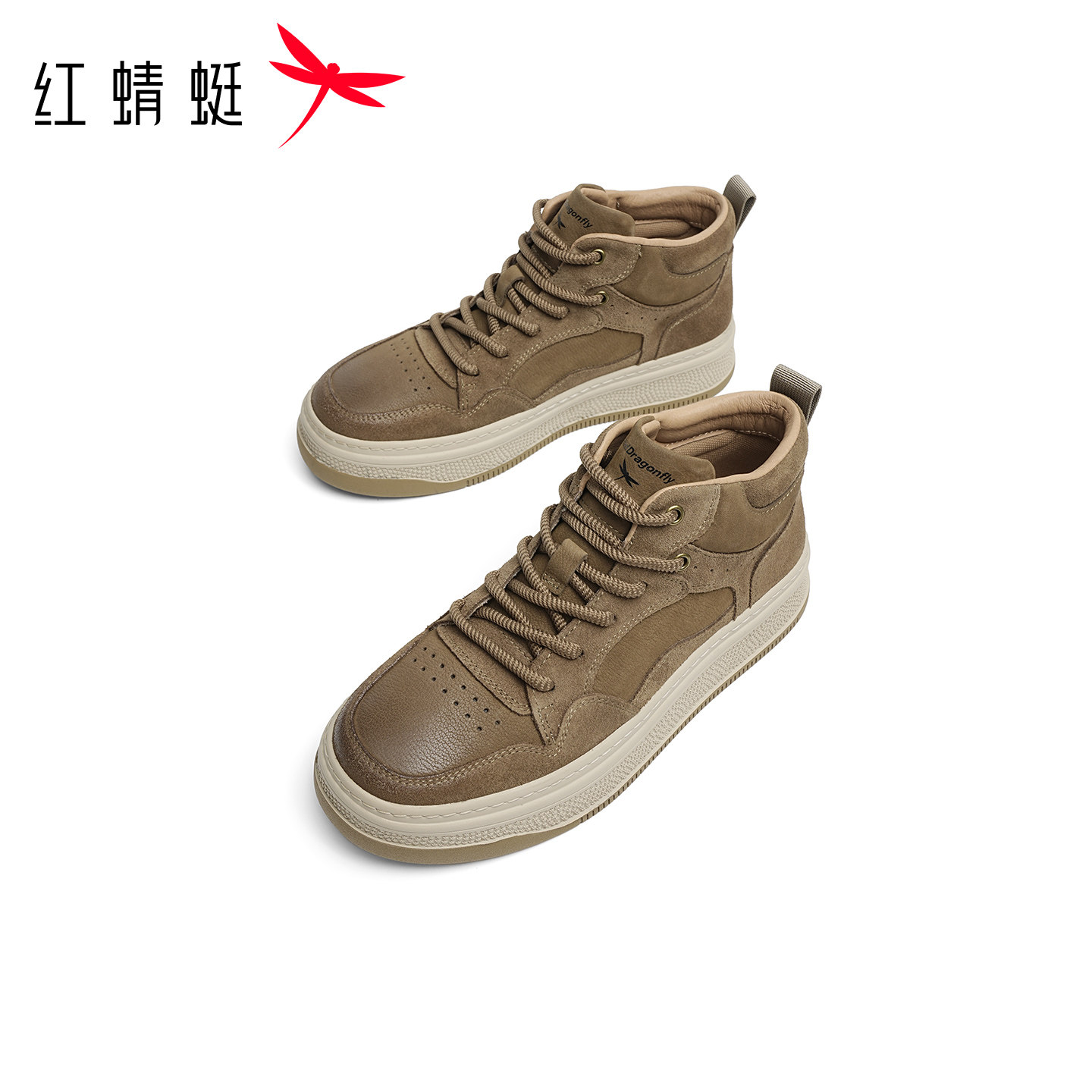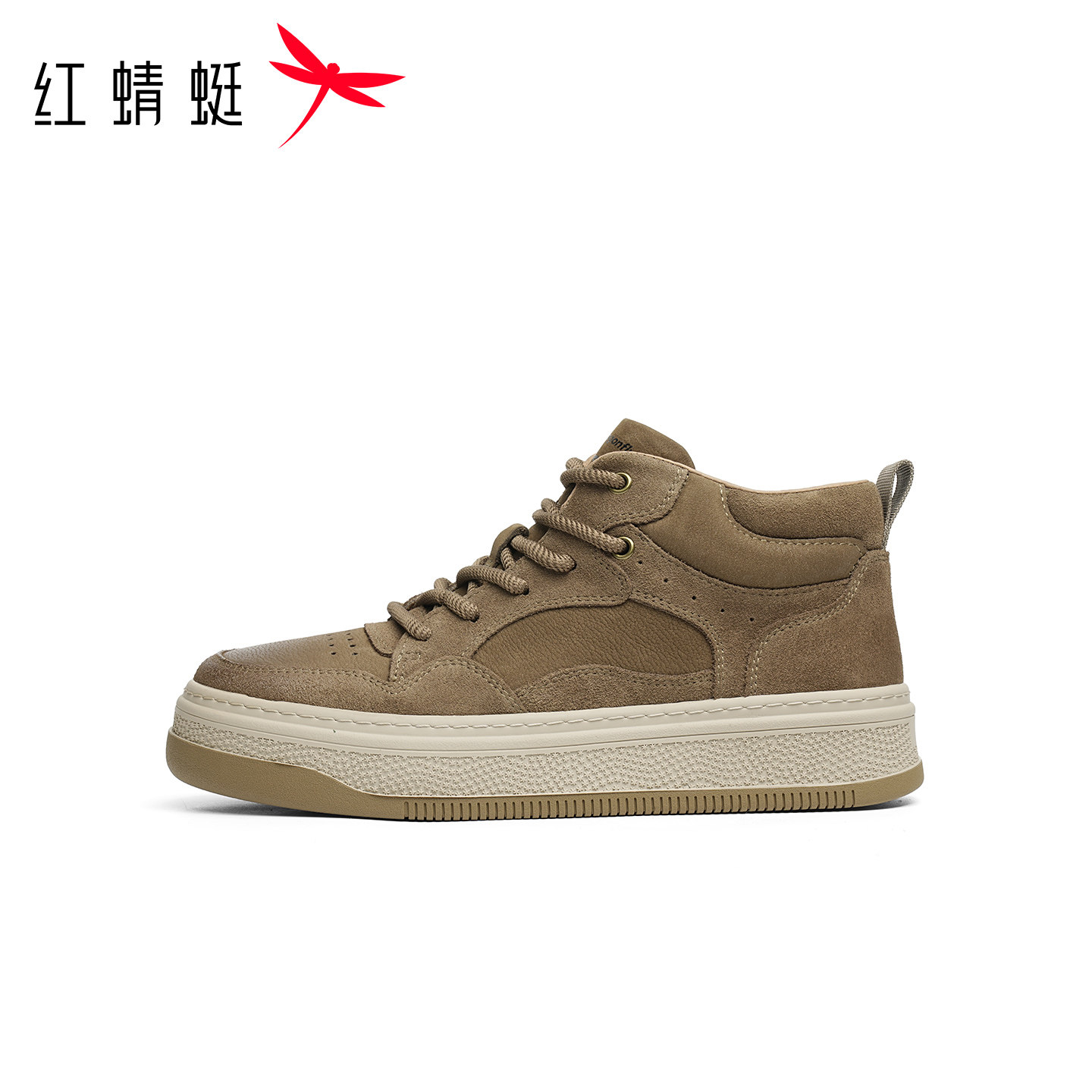 天猫红蜻蜓休闲工装板鞋秋冬新款男鞋平底系带高帮鞋通勤小白板鞋皮鞋