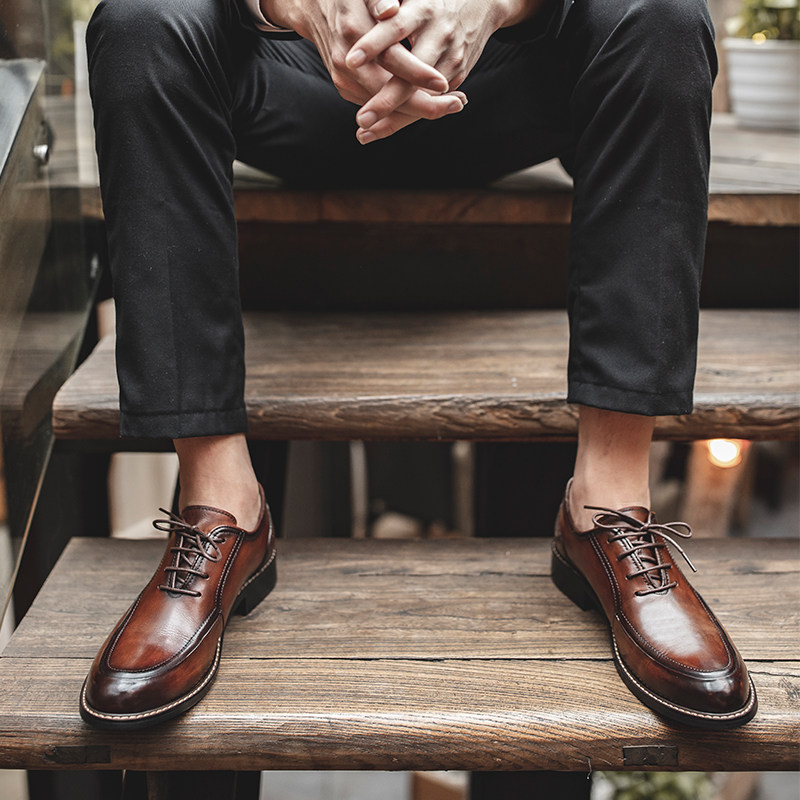 这款男士英伦风真皮德比鞋,精选优质头层牛皮,质感细腻,透气舒适,经久耐穿。经典棕色设计,百搭易配,无论是商务正装、婚礼新郎造型,还是日常休闲穿搭,均能轻松驾驭。德比鞋型设计,鞋襟开放式系带,穿脱便捷,贴合脚型,兼顾优雅与舒适。精致车缝线工艺,彰显匠心品质;防滑橡胶大底,行走稳健安心。无论是职场通勤、重要会议,还是婚礼庆典、浪漫约会,这双鞋都能为男士增添稳重气质与时尚魅力,是衣橱中不可或缺的百搭单品。