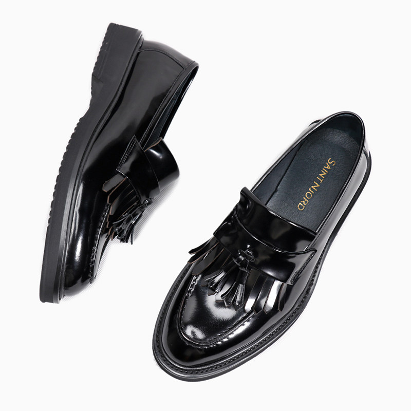 淘宝优100英伦风潮流一脚蹬亮皮ins小皮鞋休闲男士韩版流苏乐福鞋厚底