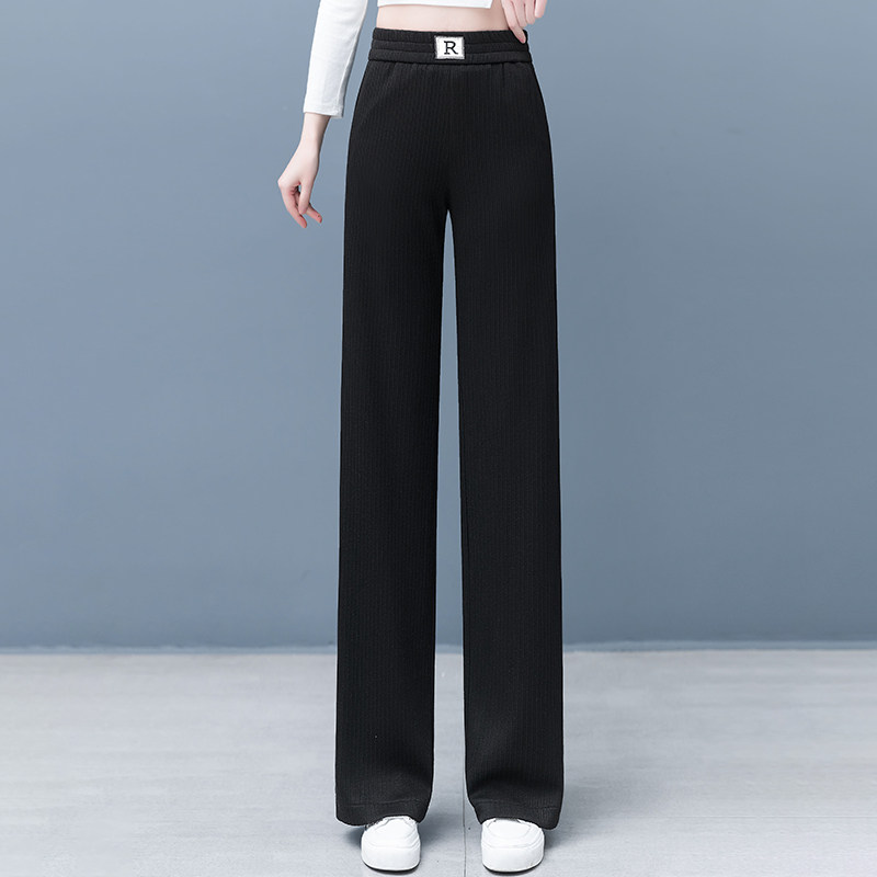 淘宝雪尼尔窄版阔腿裤女春秋季新款高腰垂感小个子休闲加绒加厚直筒裤