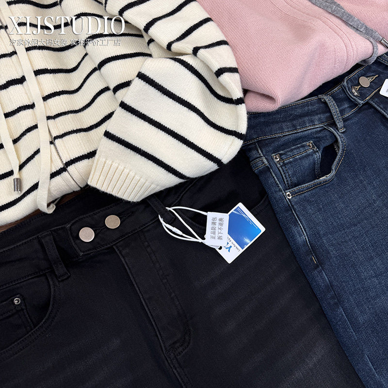 淘宝汐家女裤秋冬加绒弹力小直筒裤大码高腰烟管牛仔裤休闲韩版