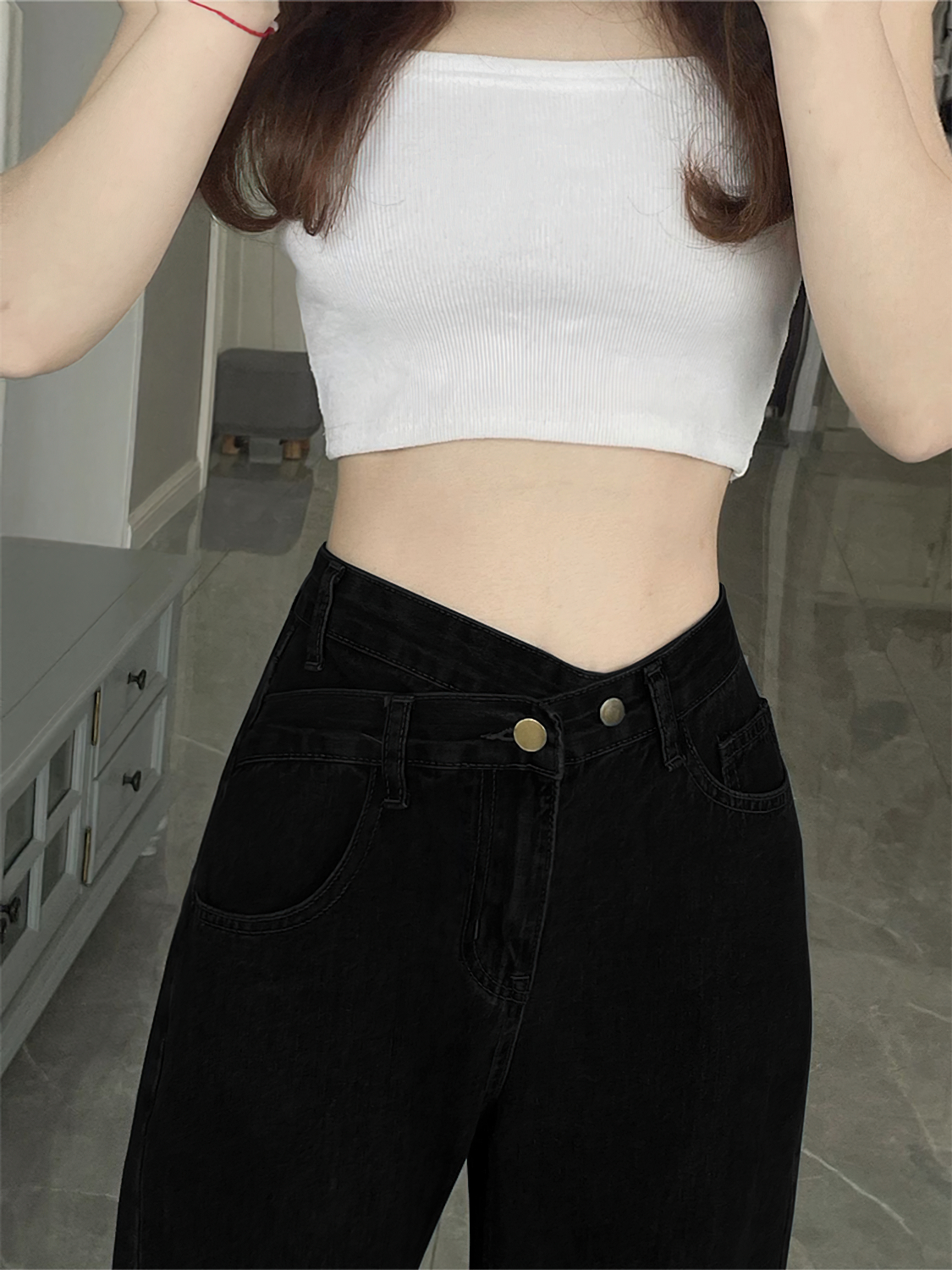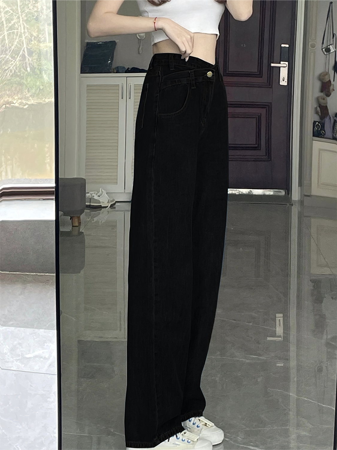 这款专为梨型身材女性设计的秋冬加绒高腰显瘦阔腿牛仔裤,采用黑色不规则直筒剪裁,视觉上拉长腿部线条,有效修饰臀胯比例。高腰设计收腹提臀,搭配加绒内里,保暖舒适,适合秋冬季节穿着。宽松阔腿版型包容性强,巧妙隐藏大腿赘肉,显瘦效果显著。不规则下摆增添时尚感,打破单调,彰显个性。精选弹力牛仔面料,柔软亲肤,久穿不变形。无论是搭配毛衣、卫衣还是大衣,都能轻松打造休闲或通勤造型,是胖MM秋冬衣橱的必备单品,兼顾舒适、保暖与时尚。