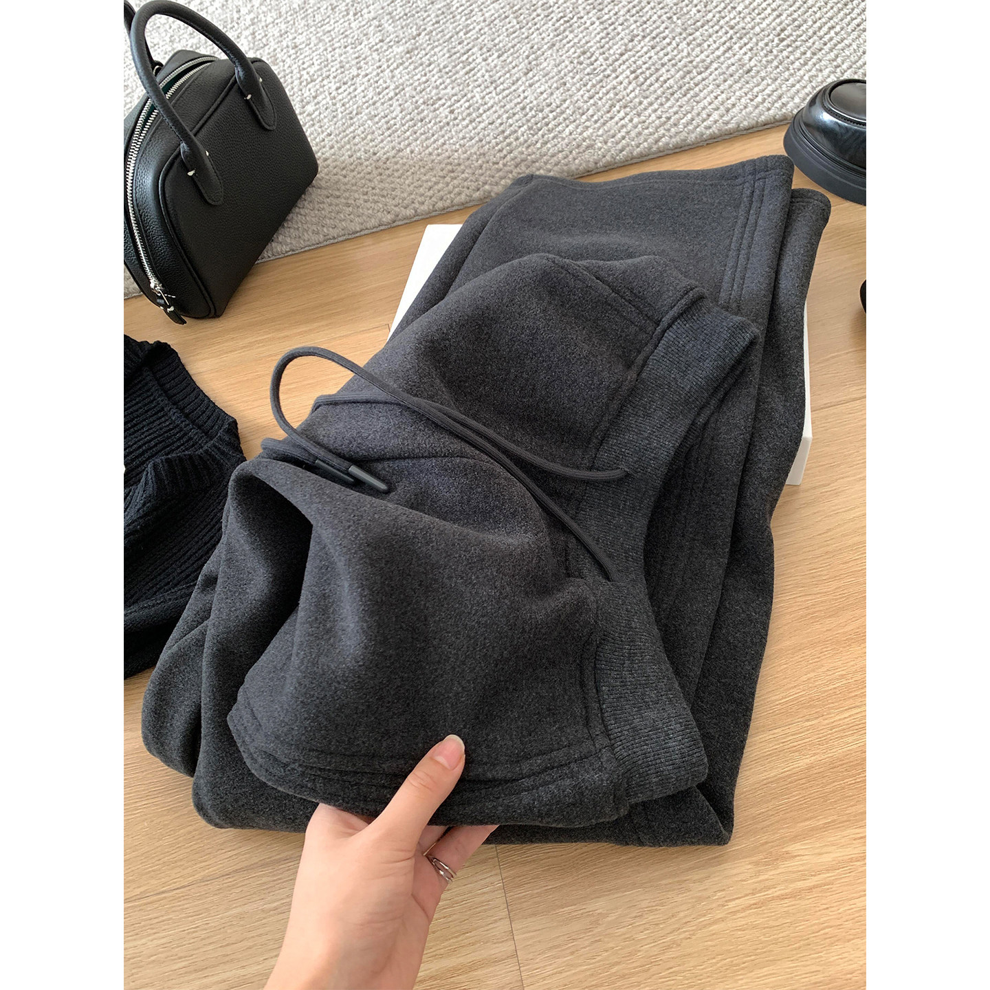 这款深灰色毛呢直筒休闲裤,专为冬季设计,采用加绒加厚面料,保暖舒适,适合寒冷天气。直筒阔腿版型宽松显瘦,巧妙修饰腿型,尤其适合胖MM和小个子女生,视觉拉长腿部线条,轻松穿出高挑感。高腰设计提升腰线,搭配简约上衣或毛衣皆宜,风格休闲百搭。深灰色经典耐看,不易过时,无论是日常通勤还是休闲出行都能轻松驾驭。优质毛呢材质挺括有型,不易起球变形,穿着更持久。整体兼顾时尚与实穿,是冬季衣橱的必备单品,让你在保暖的同时也能展现优雅自信的魅力。