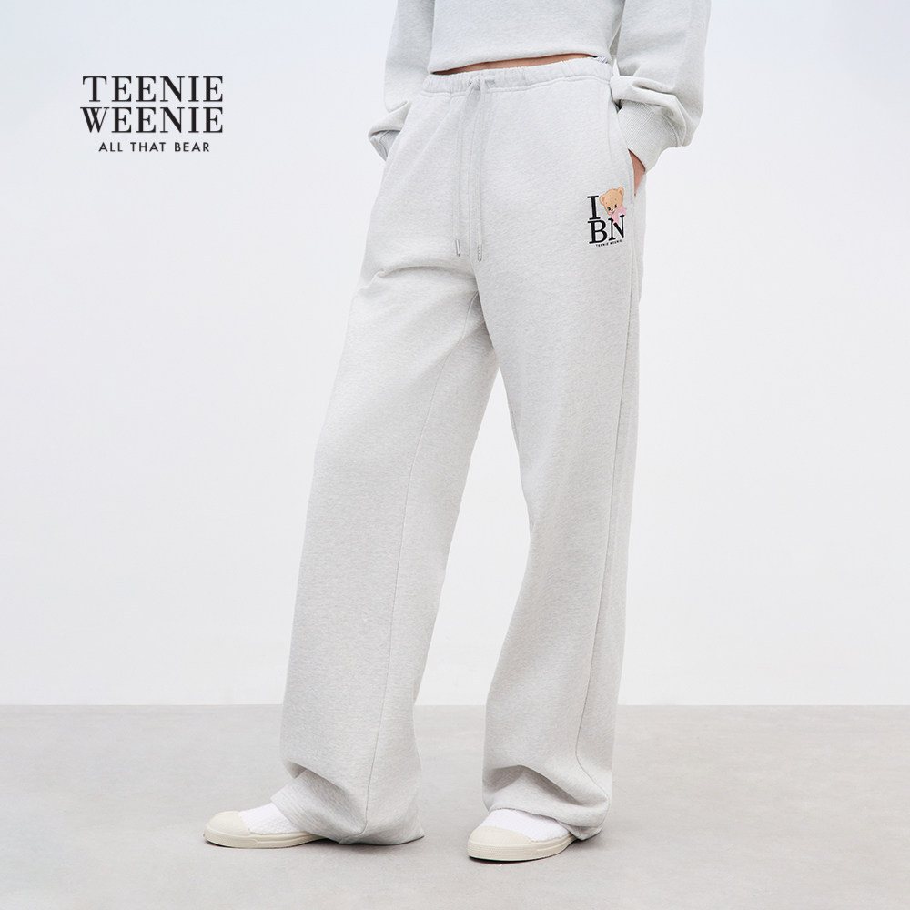 天猫TEENIEWEENIE bearnova小熊女装松弛感腰部抽绳宽松直筒卫裤长裤