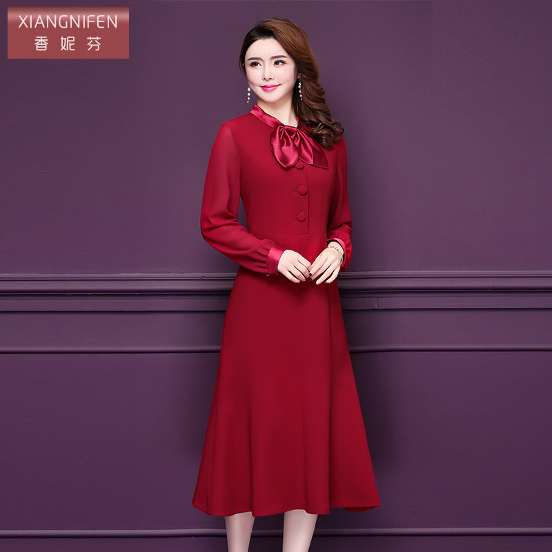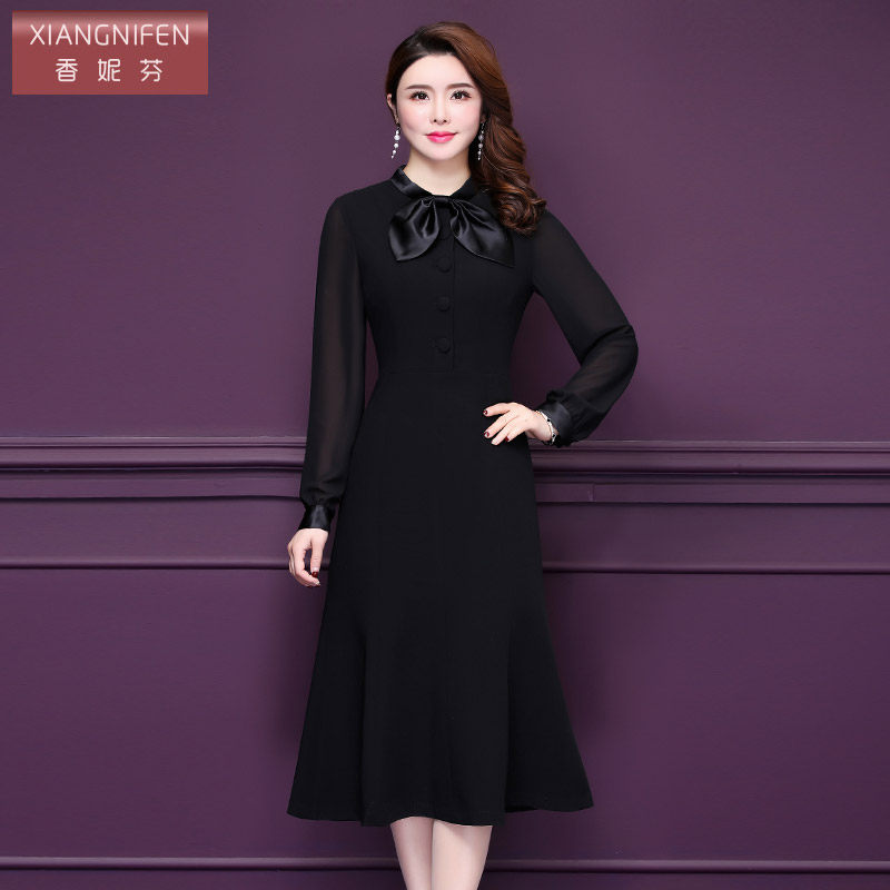 天猫香妮芬2025秋季新款气质中年女装连衣裙韩版时尚修身洋气A字裙