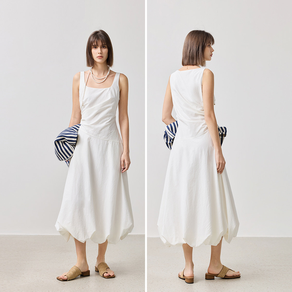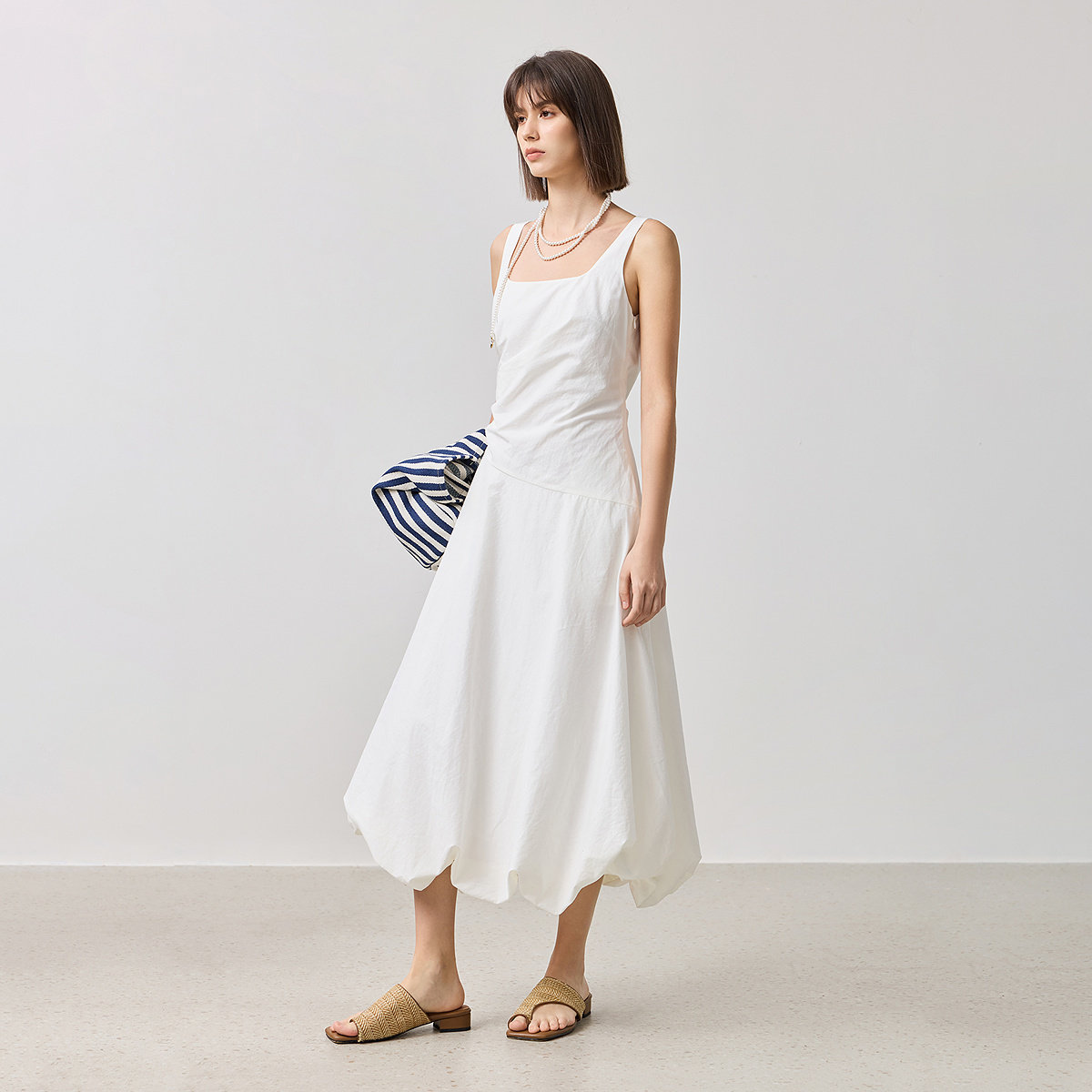 asomesome美式辣妹吊带连衣裙女夏设计感白色花苞裙收腰伞裙